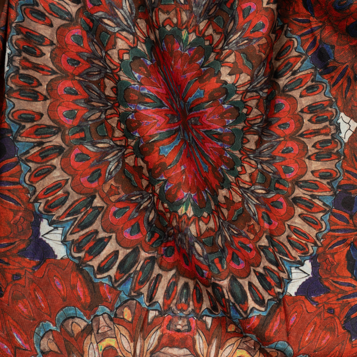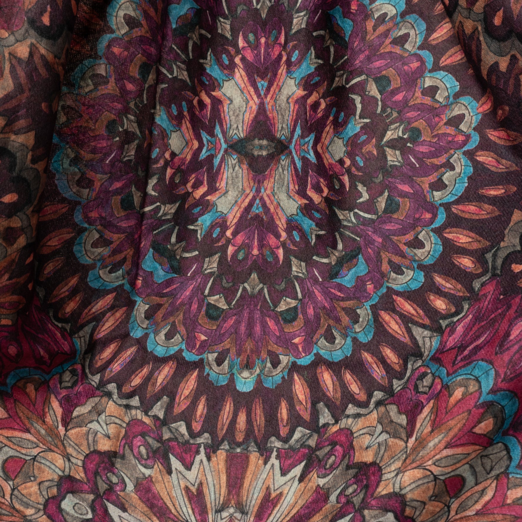 Eșarfă Colorată Imprimeu Peacock din Lână și Vâscoză
