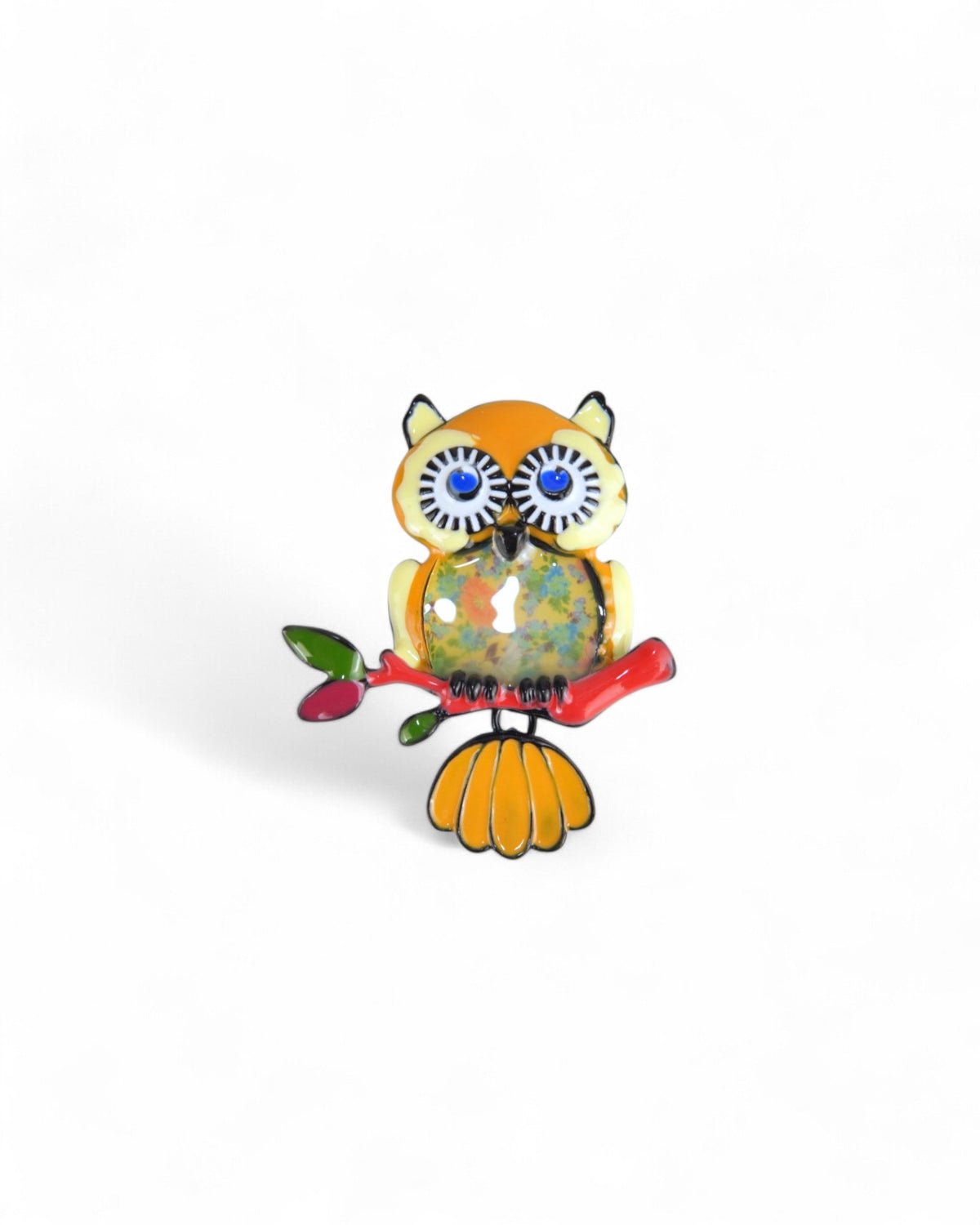 - DESIGN AMUZANT: Broșă bufniță cu ochi hipnotici și detalii vibrante, perfectă pentru un look jucăuș.