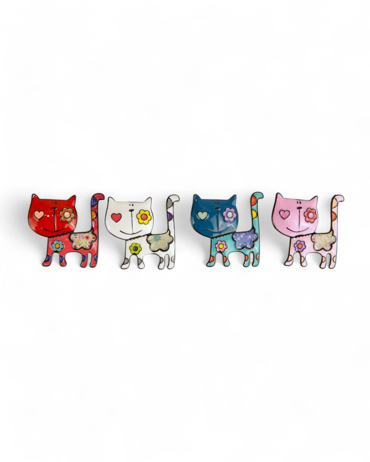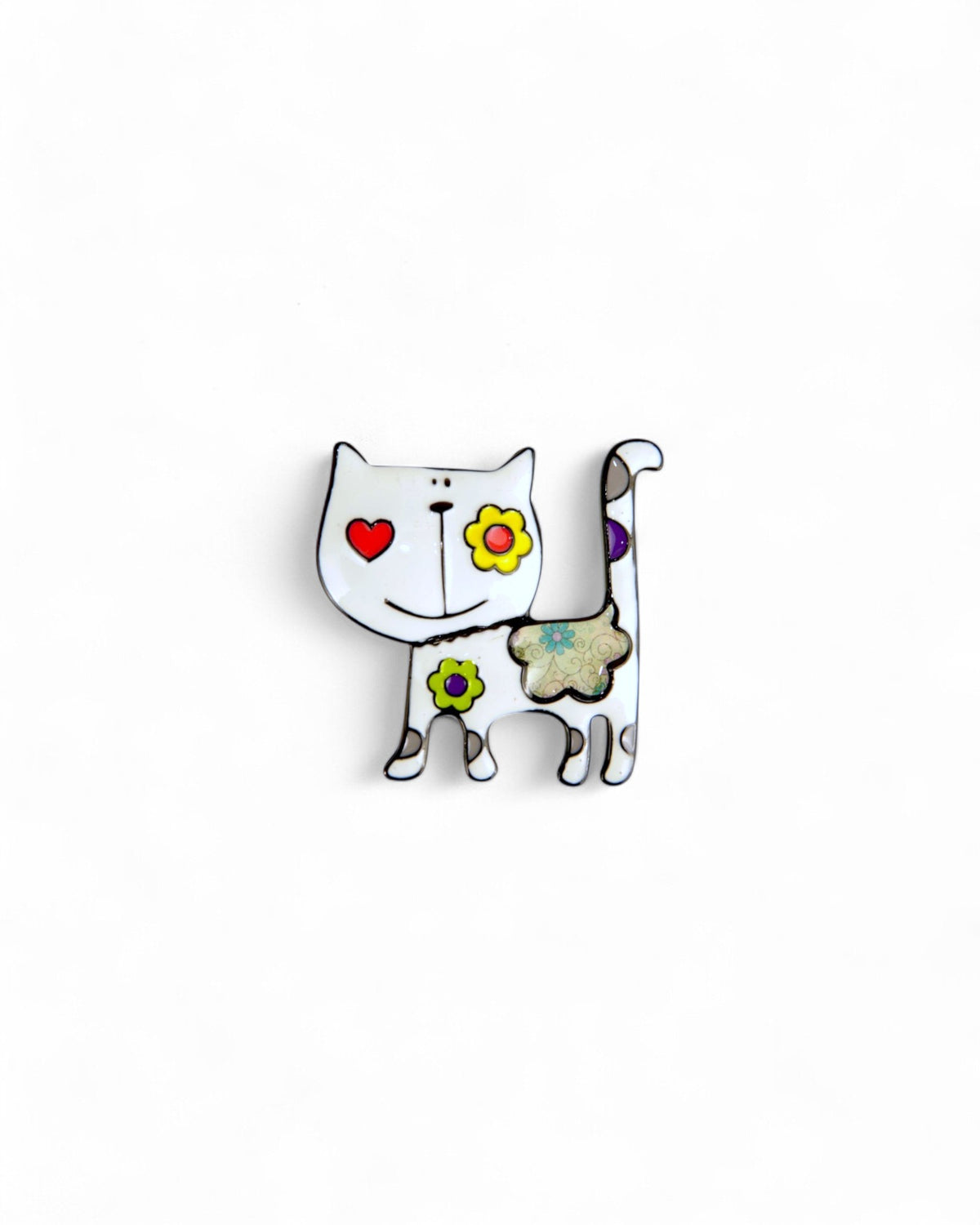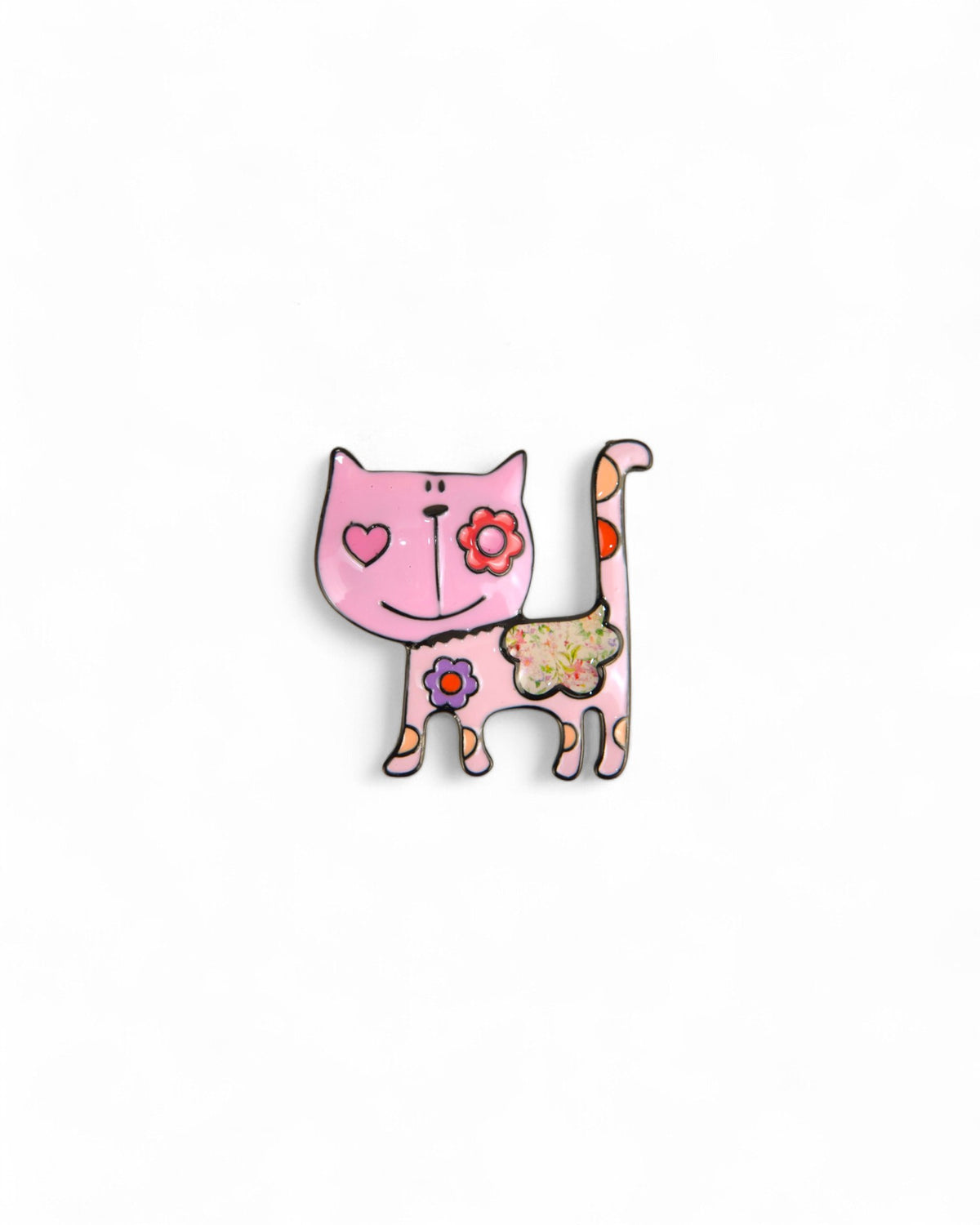 - DESIGN JUCĂUȘ: Broșa prezintă o pisicuță veselă, cu modele florale și detalii boeme.