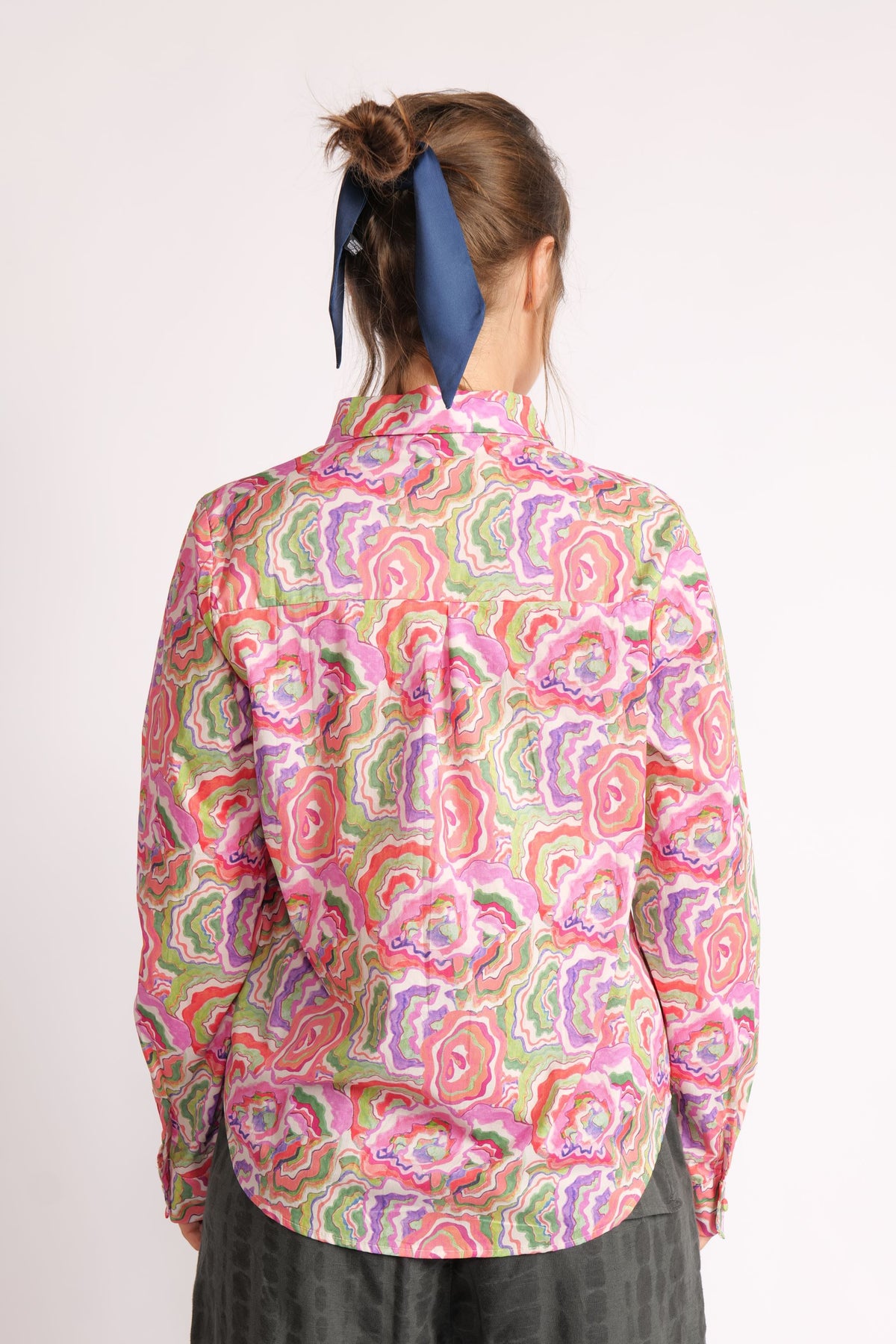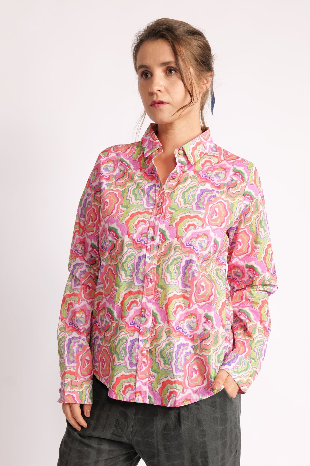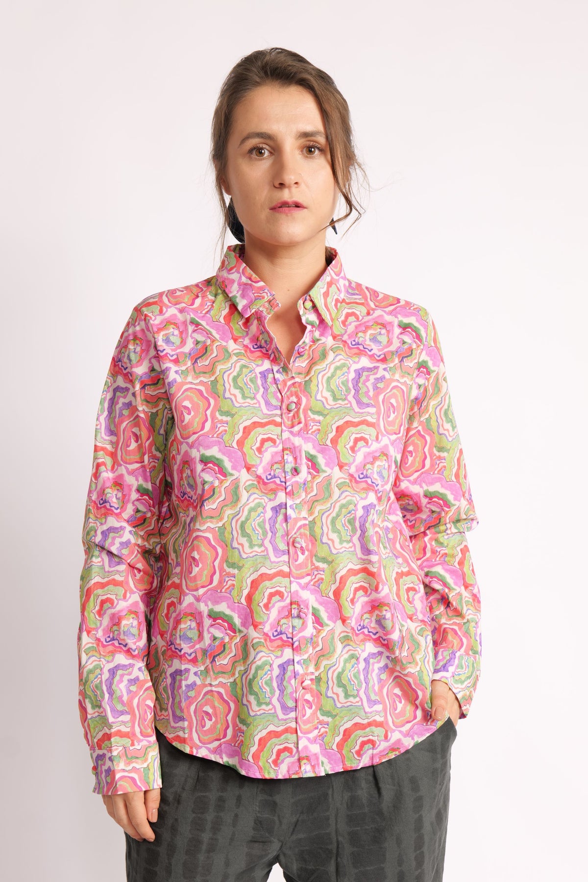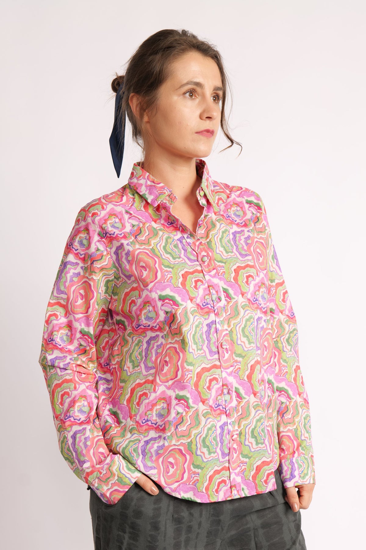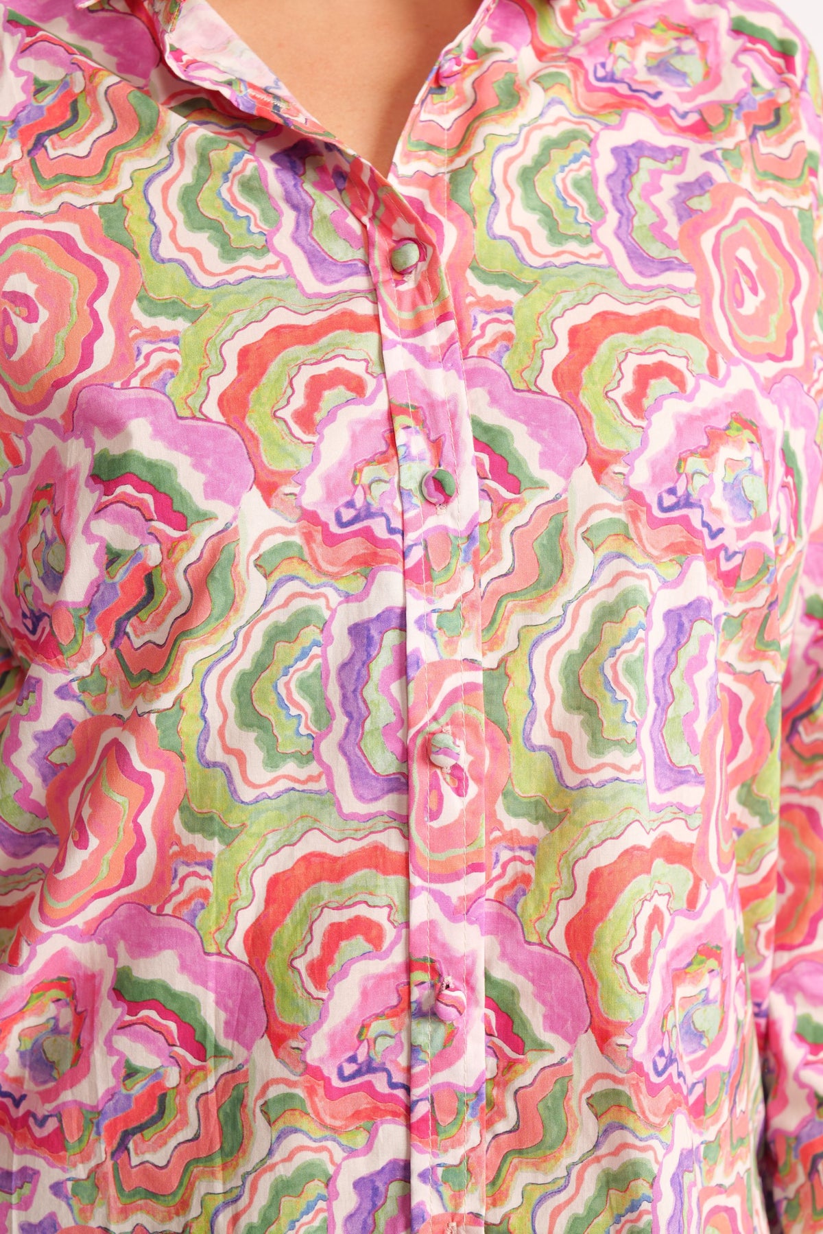Cămașă realizată din fibră de bumbac 100%. Guler cu rever. Mânecă lungă cu manșetă. Închidere frontală cu nasturi îmbrăcați în material asortat.