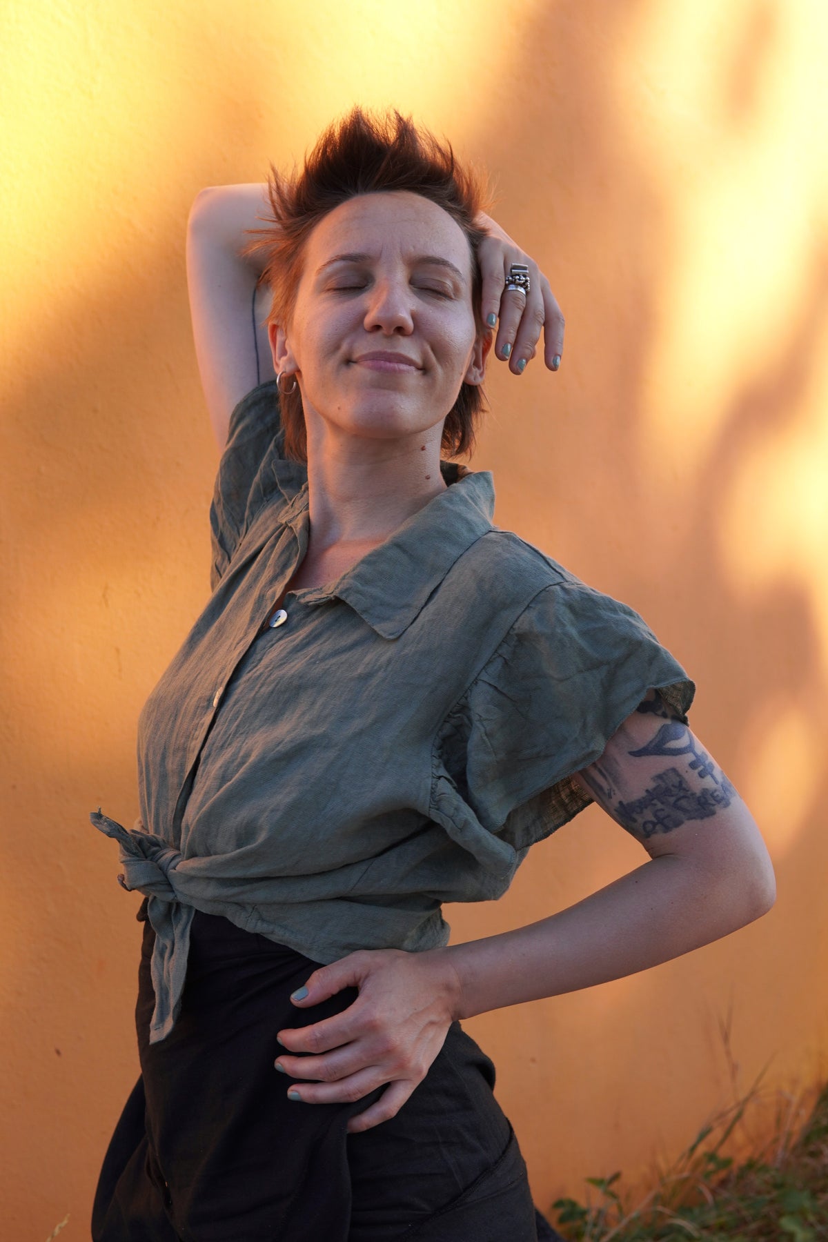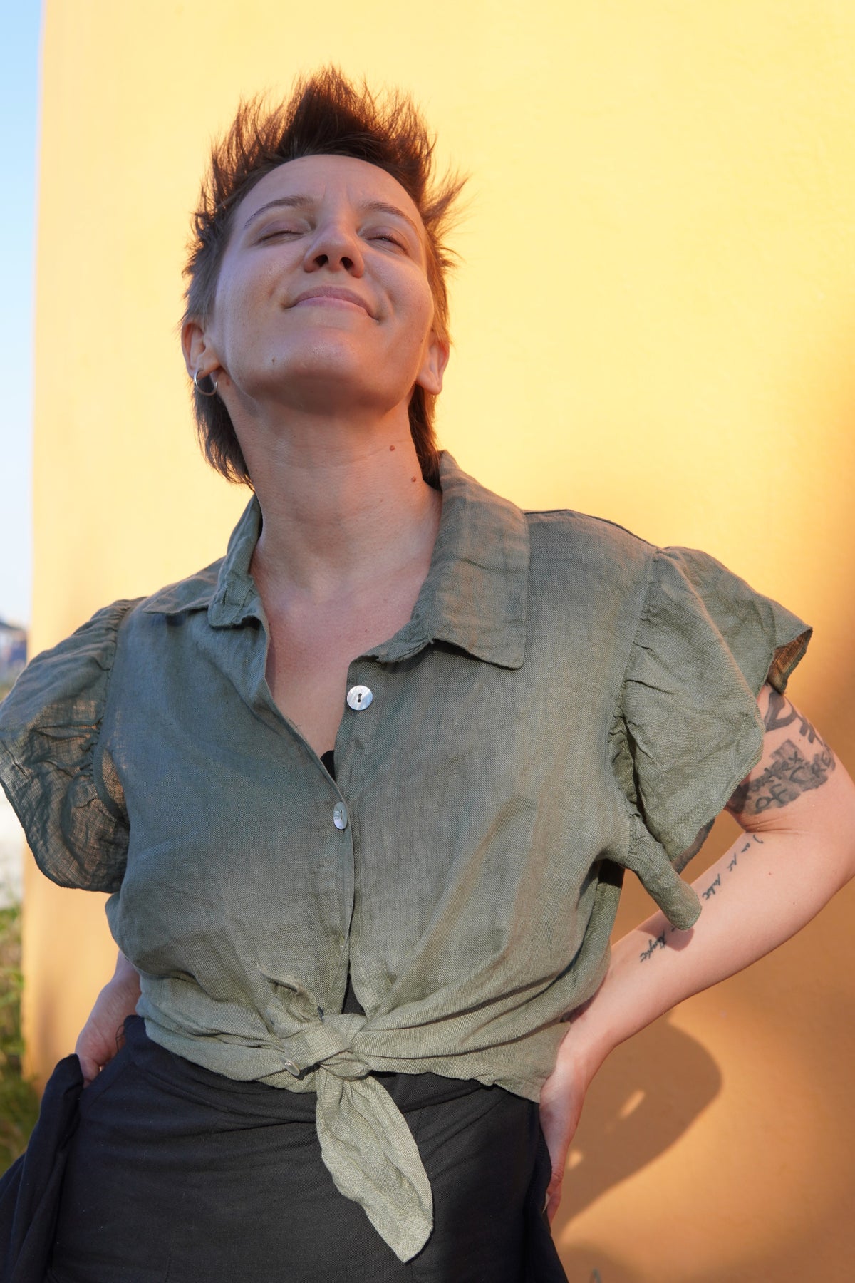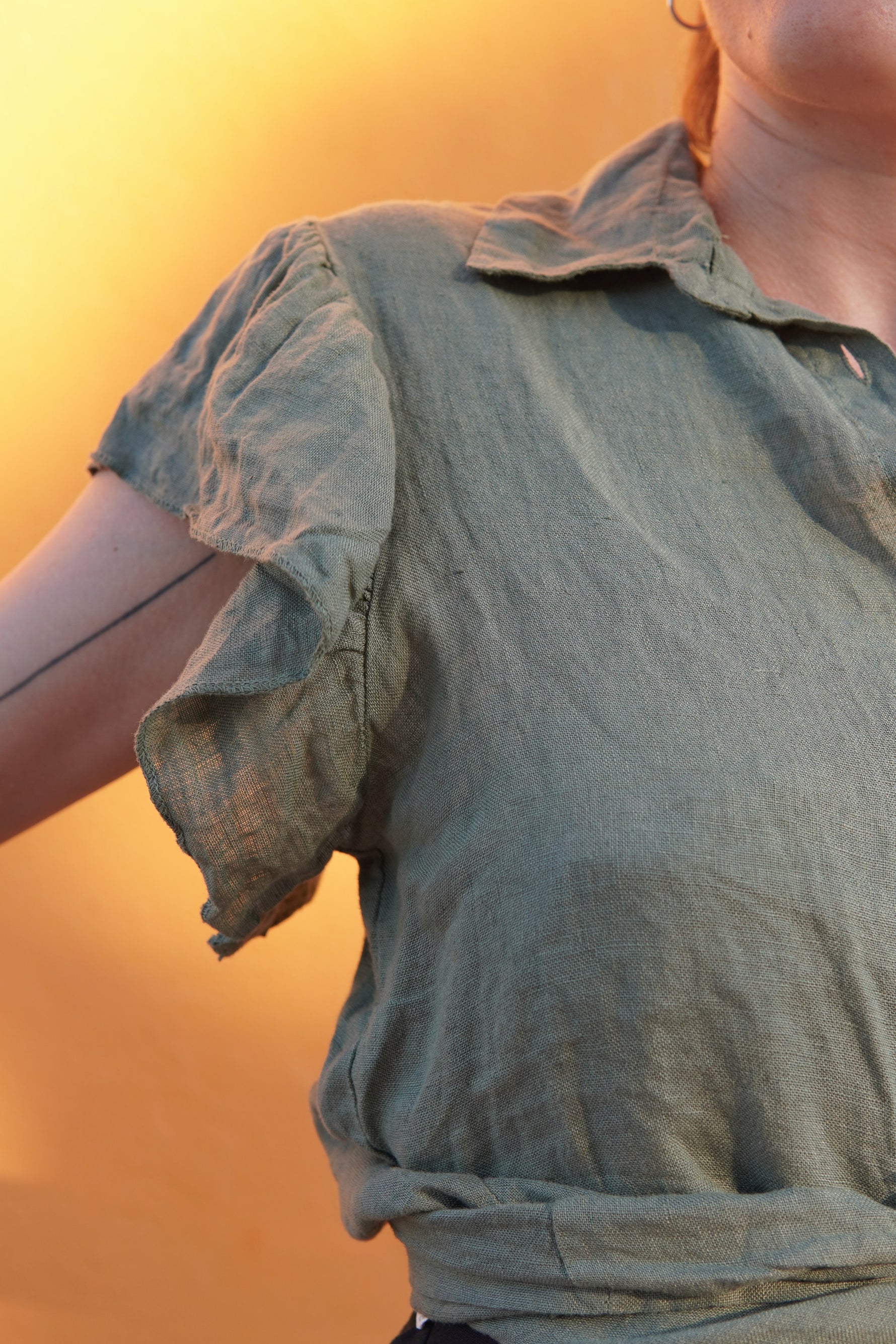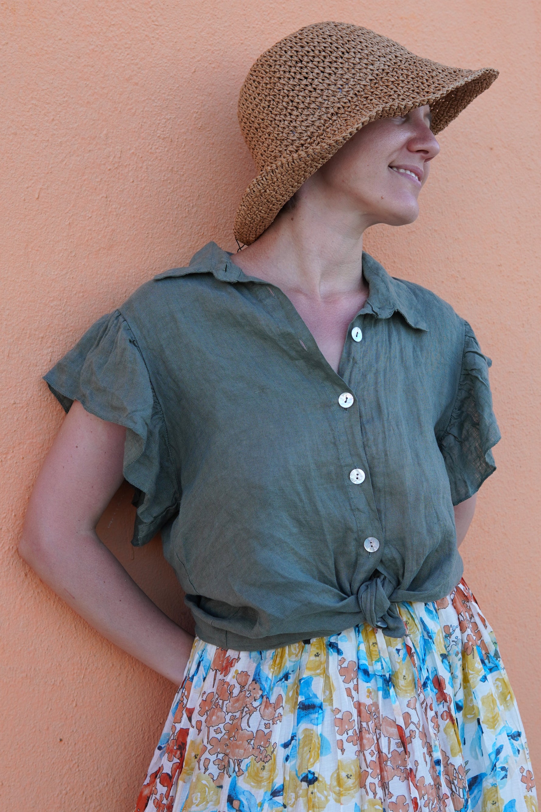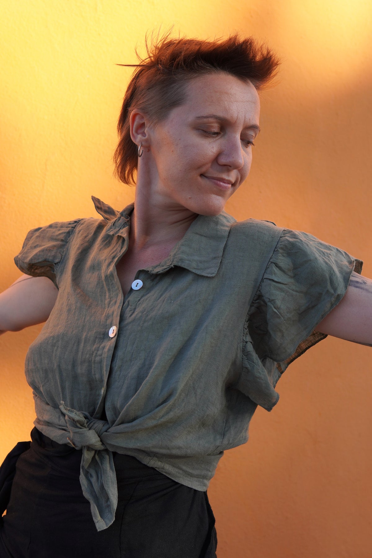 Cămașă Din In Cu Mâneci Volan – Cămașă Crop Lejeră Naturală