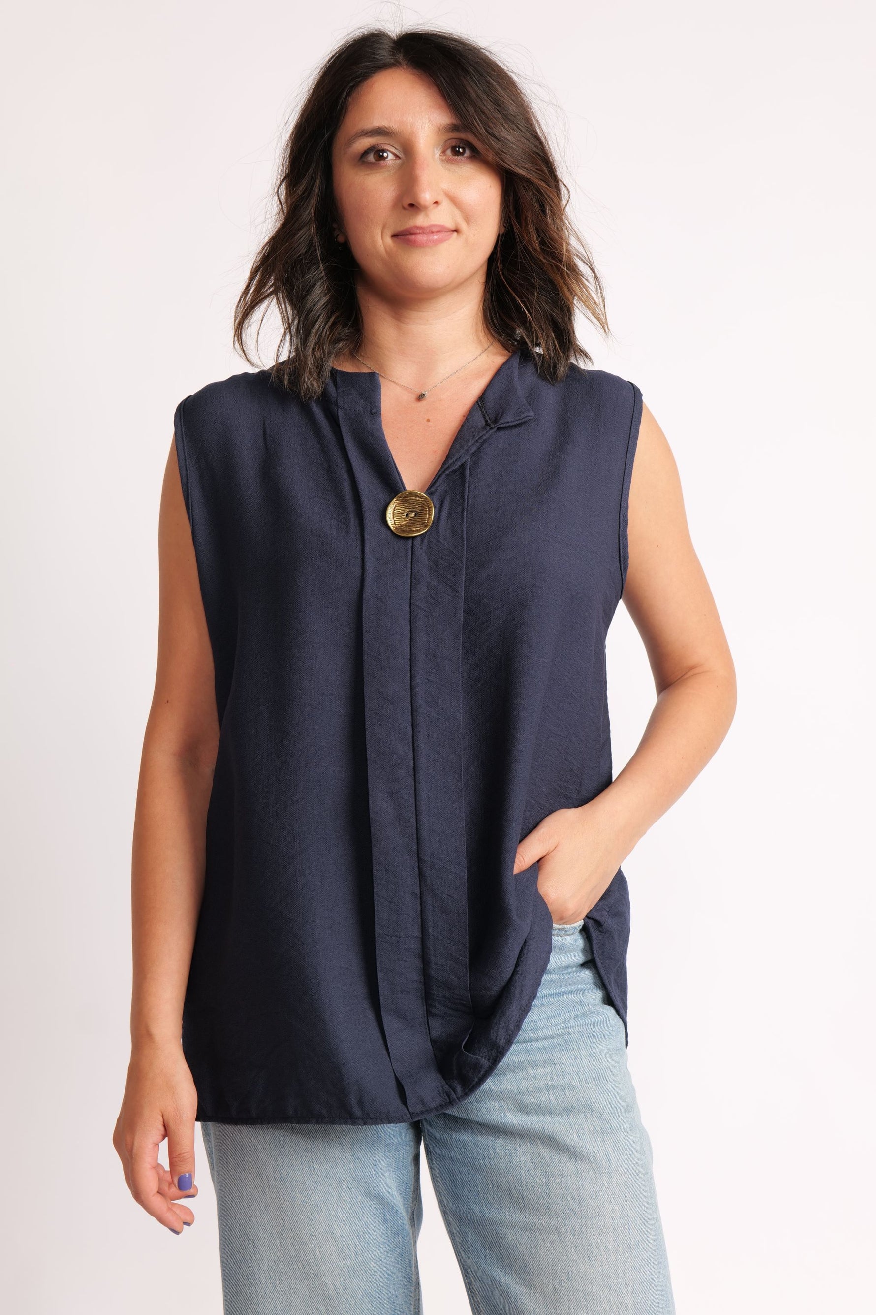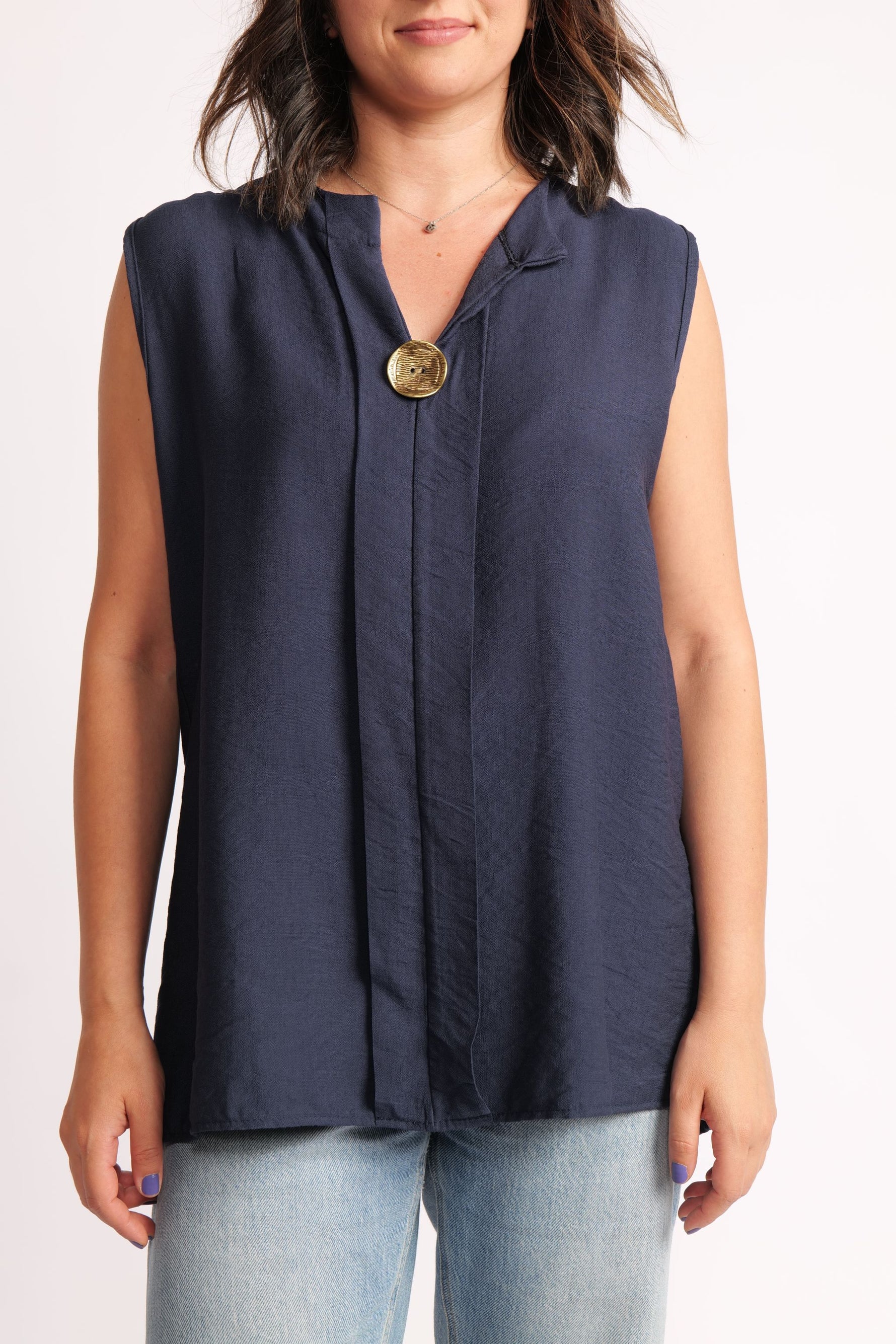 Top Fără Mâneci Cu Nasture Metalic
