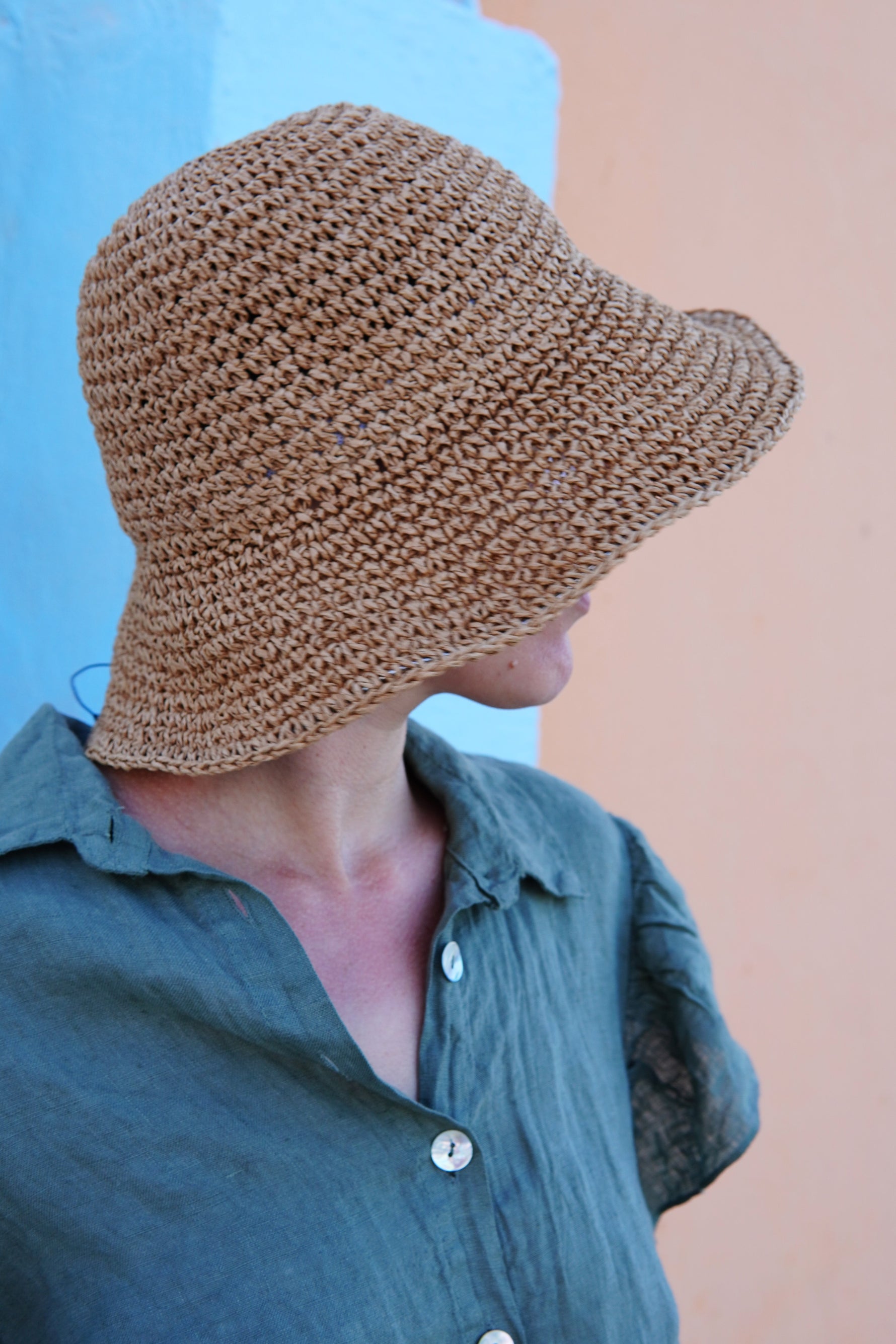 Pălărie din paie de hârtie împletite, cu calotă rotundă. Bor modelabil prin intermediul unei sârme metalice ascunse ce permite crearea unui aspect ondulat. Bandă ripsată pentru protecție împotriva transpirației. Șiret pentru reglarea circumferinței la interior.