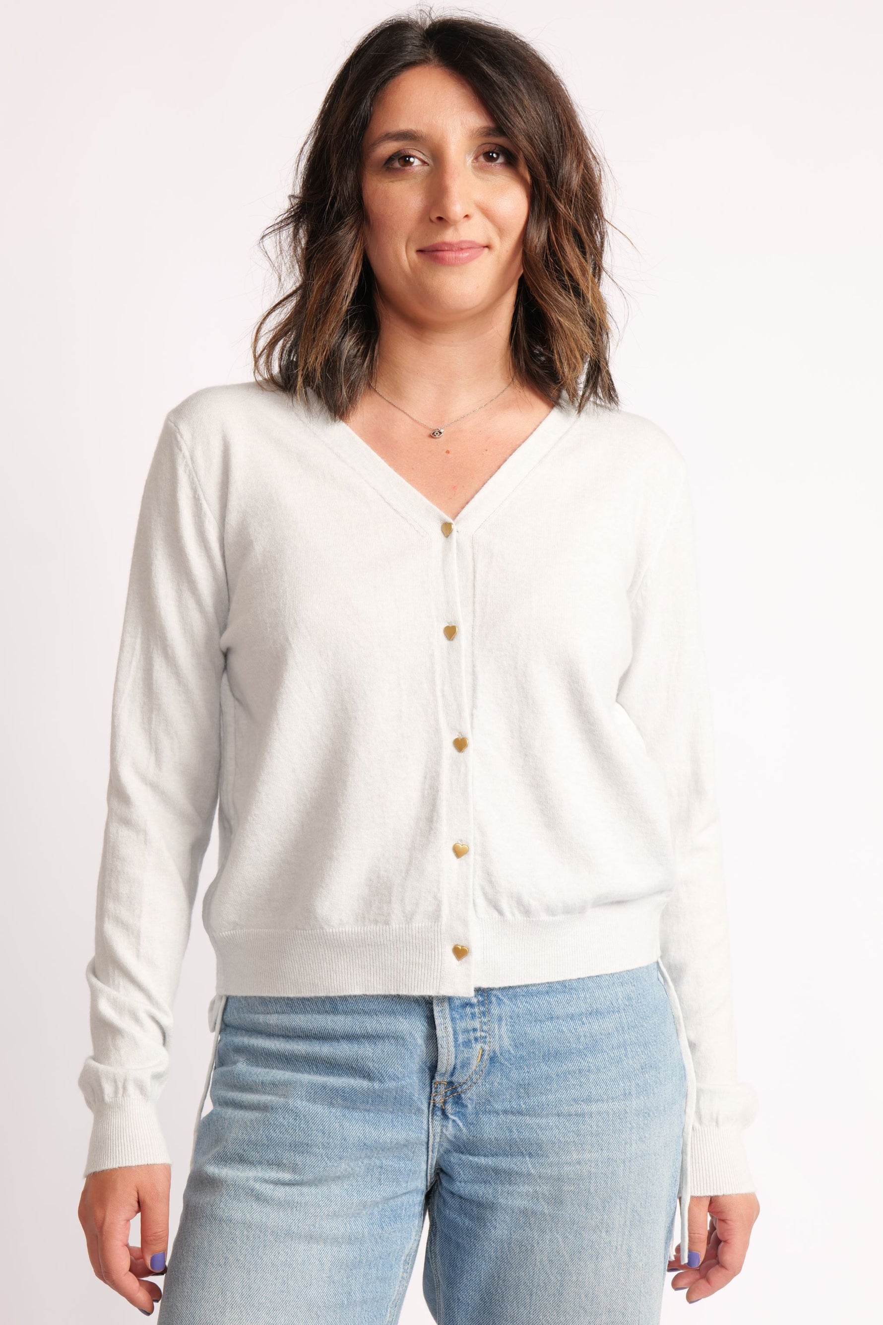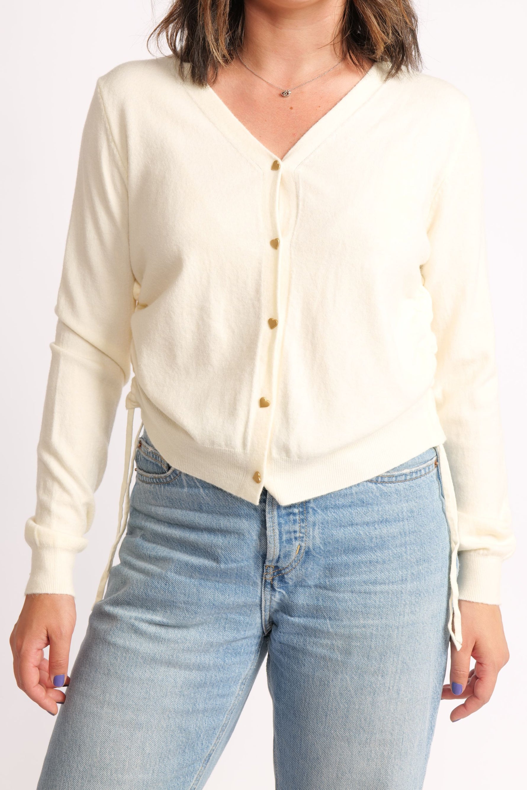 Cardigan Scurt Din Tricot Cu Nasturi Inimioare