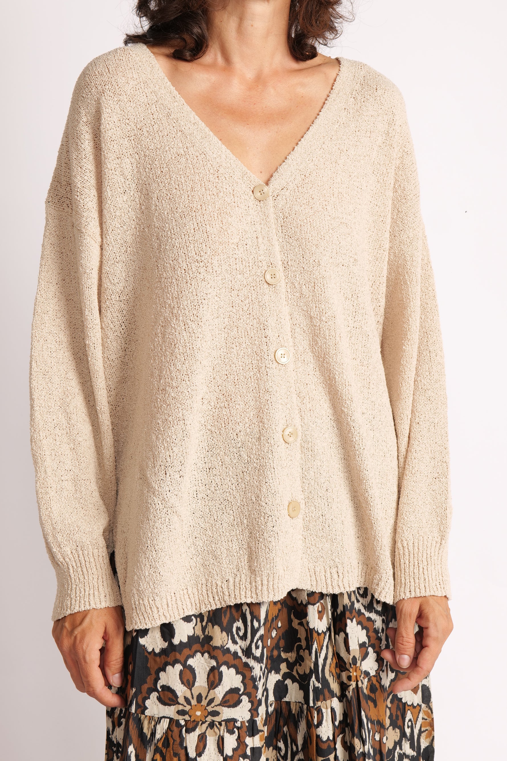 Cardigan Din Țesătură Tip Sac Cu Nasturi - Pulover Lejer - Jachetă Damă