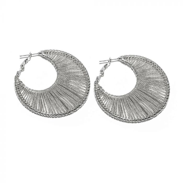 Cercei din sârmă în formă de semilună. Diametrul aproximativ 4,5 cm. Închidere cu baionetă. Placat cu argint. Testat cu nichel. Lucrat manual.