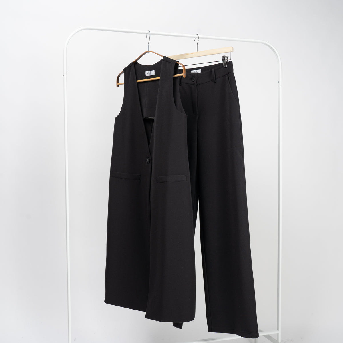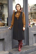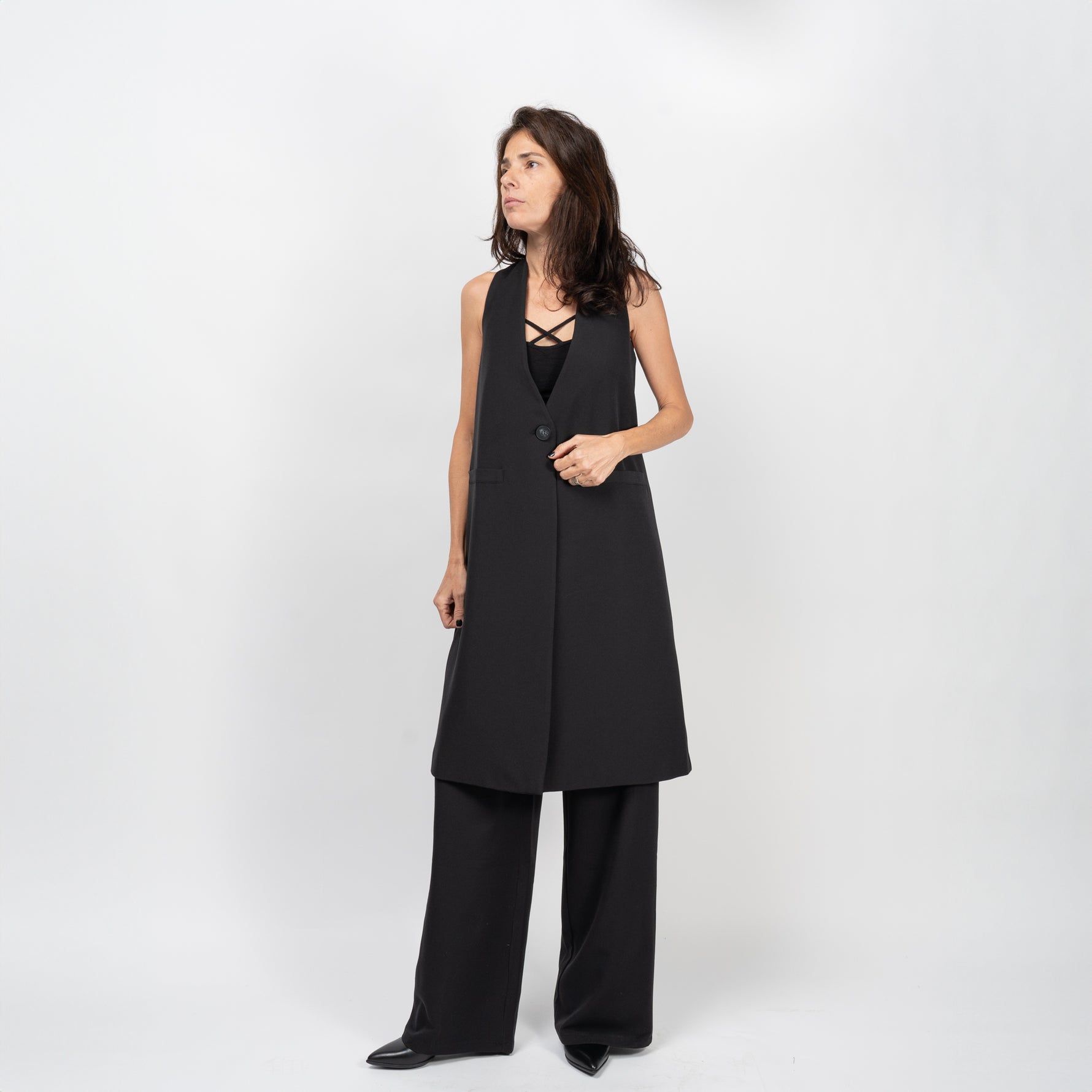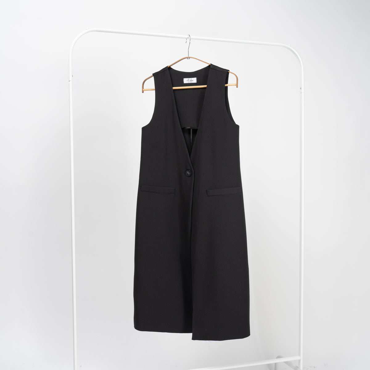 Vestă Lungă Din Stofă Cu Decolteu În V – Elegantă și Versatilă