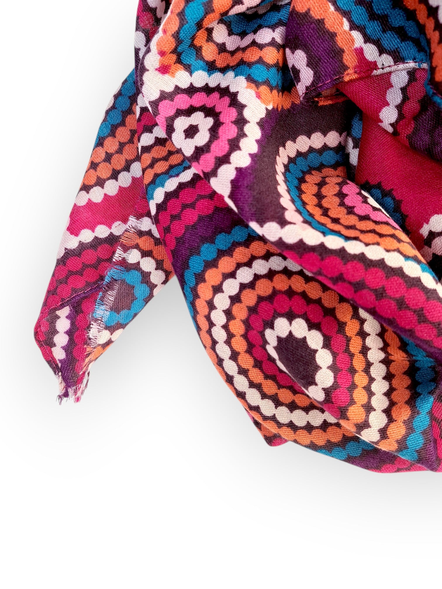 • DESIGN ATRACTIV: Imprimeu cu cercuri concentrice în culori vii