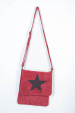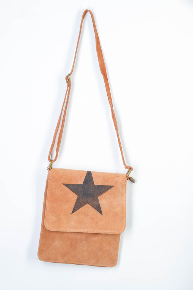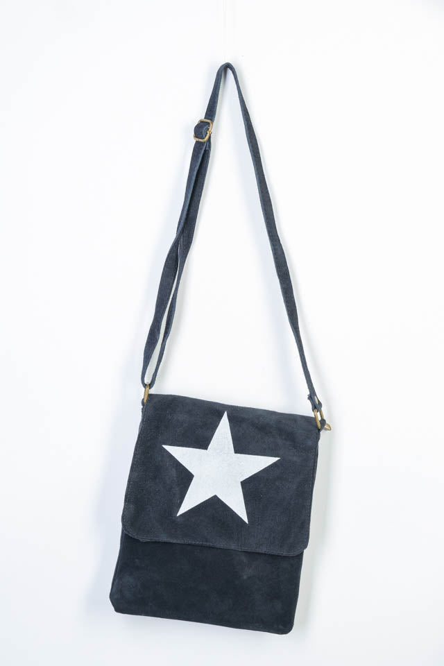 Geantă cu bandulieră din piele întoarsă. Curea ajustabilă. Închidere prin intermediul unui fermoar și a clapetei cu magnet.