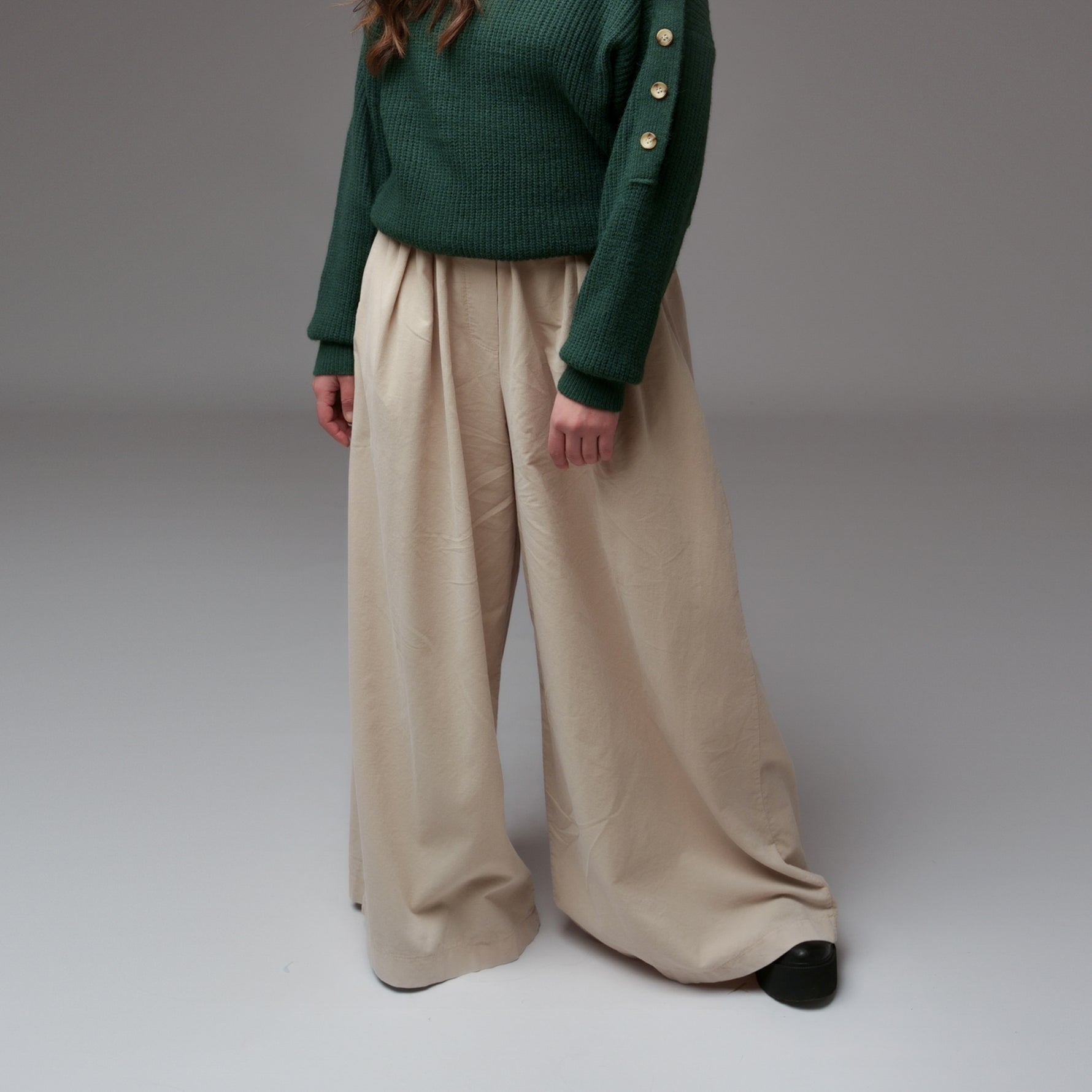 Pantaloni Largi Din Velur Fin