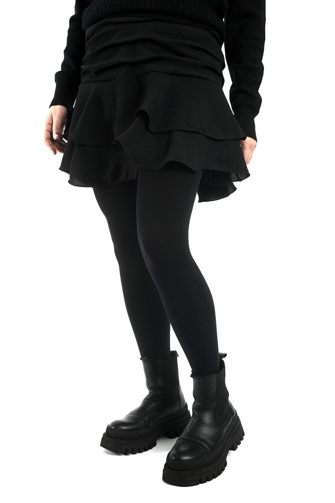 Croială: Fustă scurtă cu falduri, cu jupă pantalon integrată
