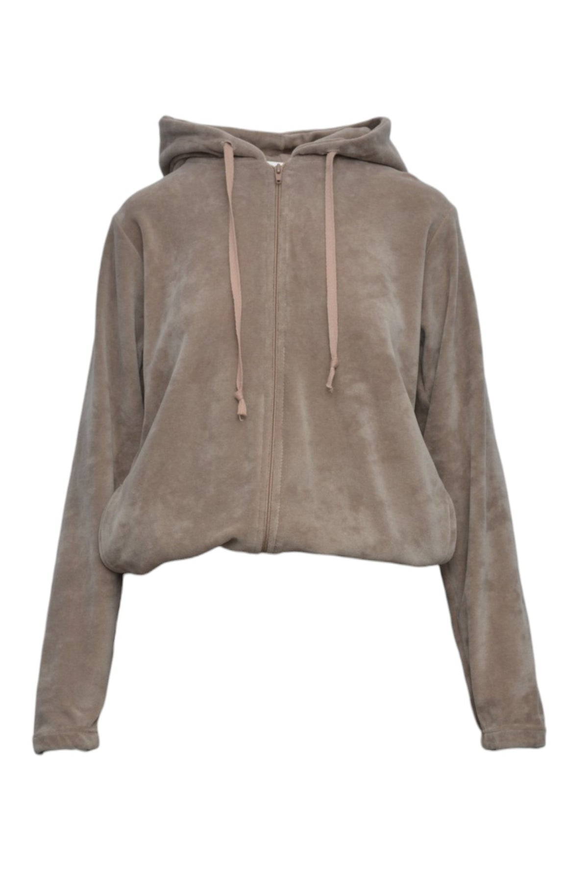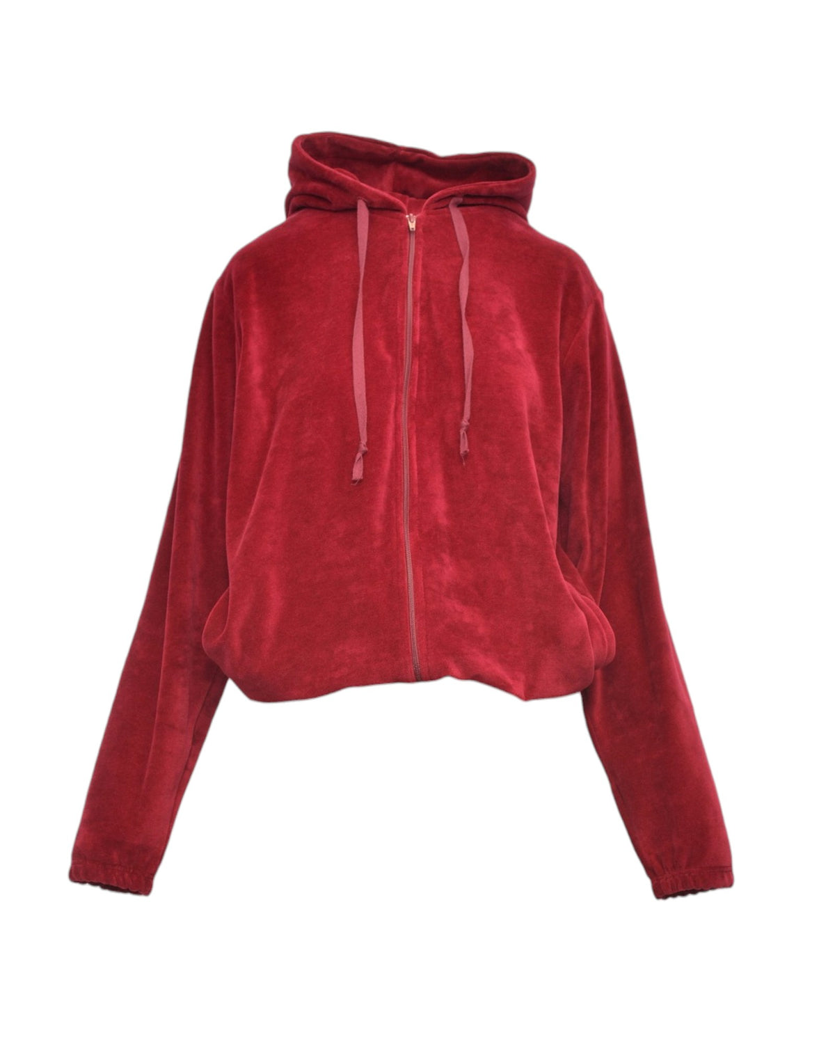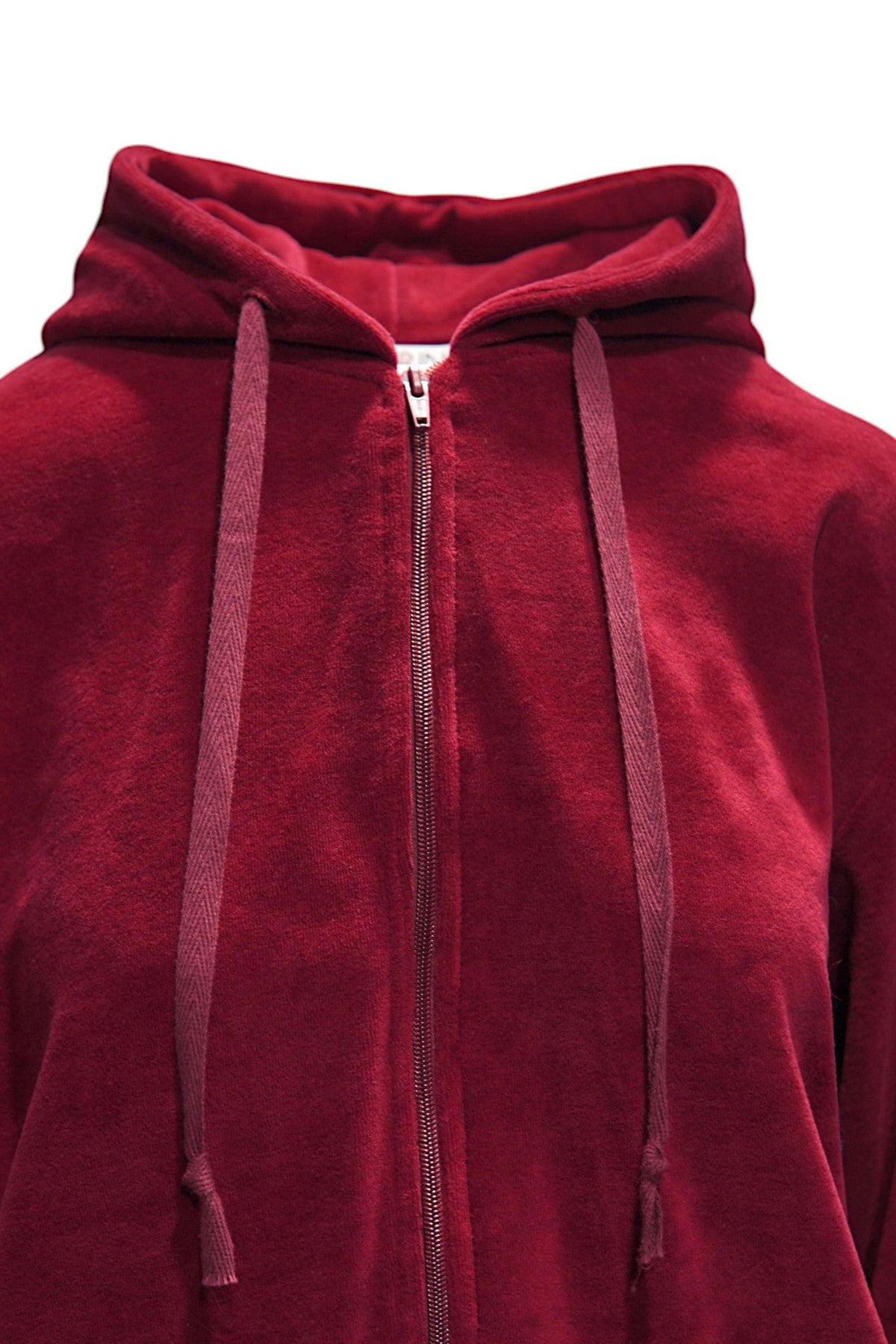 - Tip închizătoare: Bluza are fermoar frontal și șnur la glugă