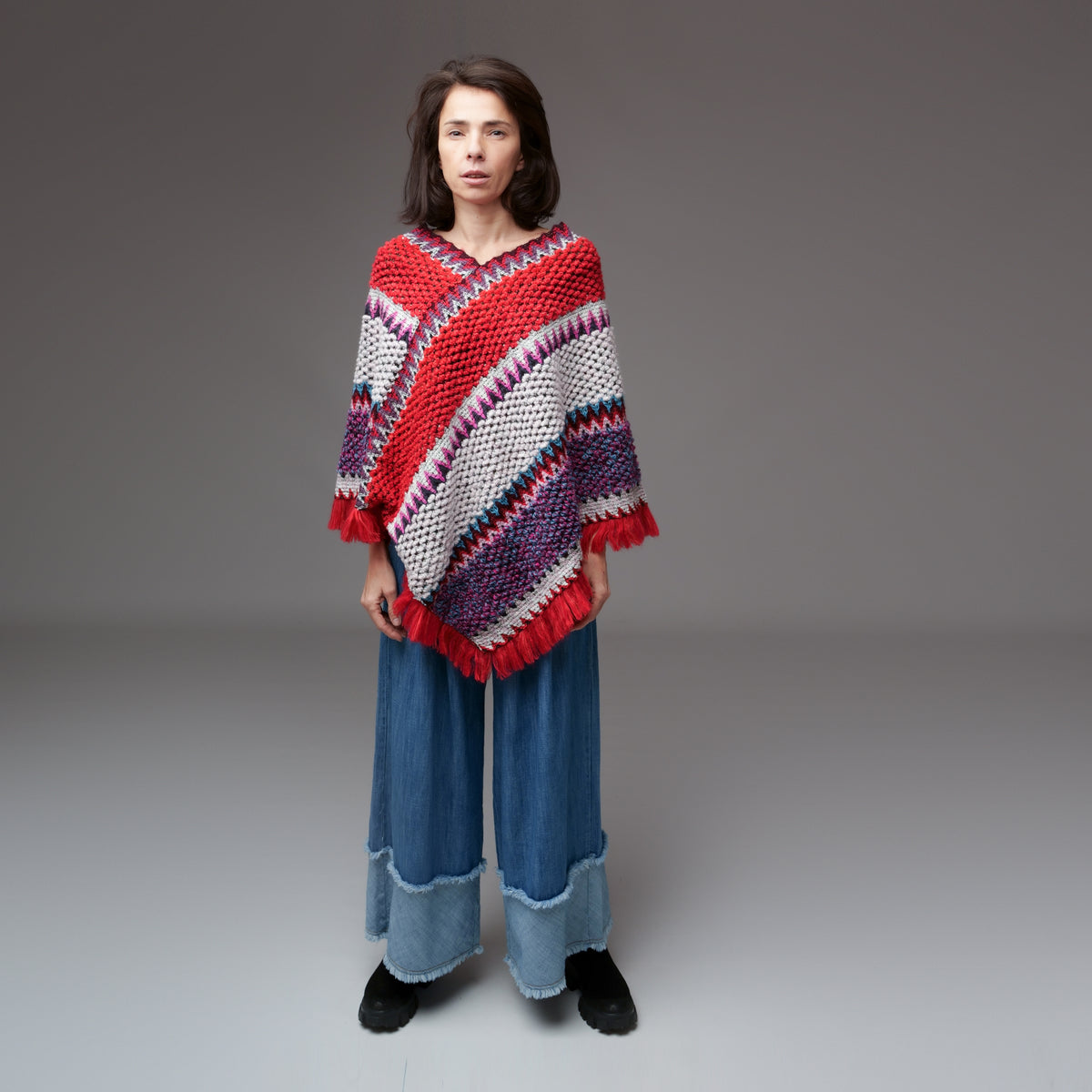 Capă Tip Poncho cu Tricot Indigen Cu 20% Lână