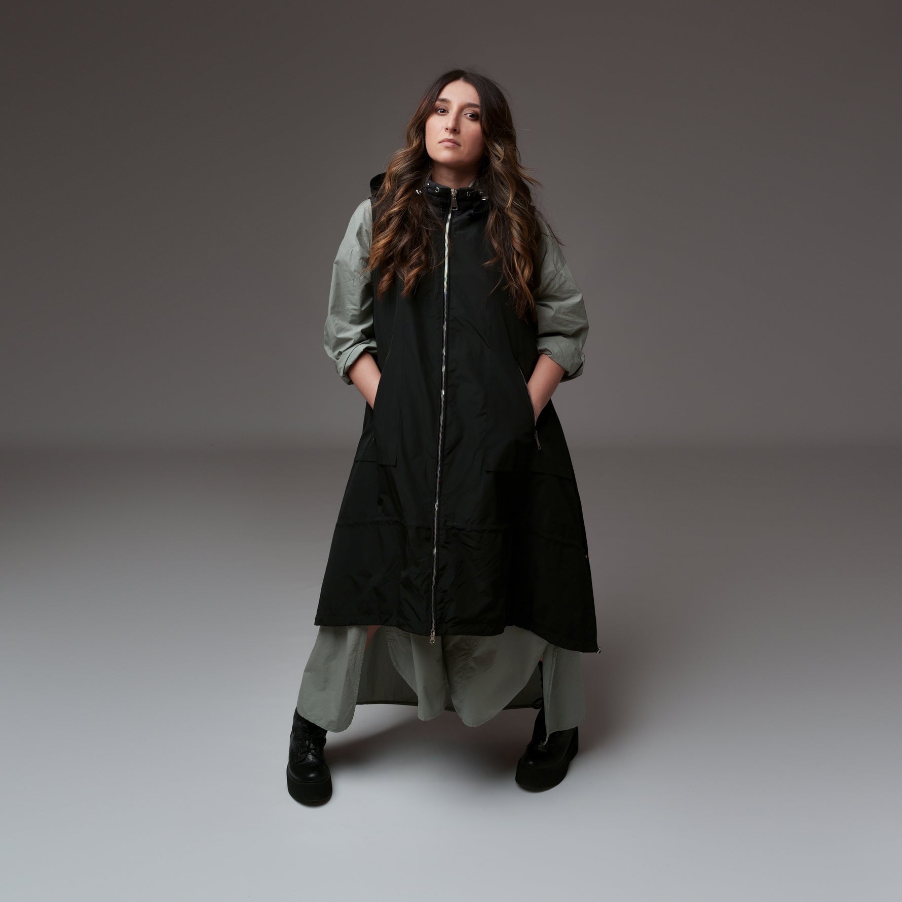 Vestă Lungă Fără Mâneci Cu Glugă Detașabilă