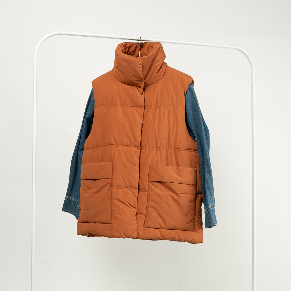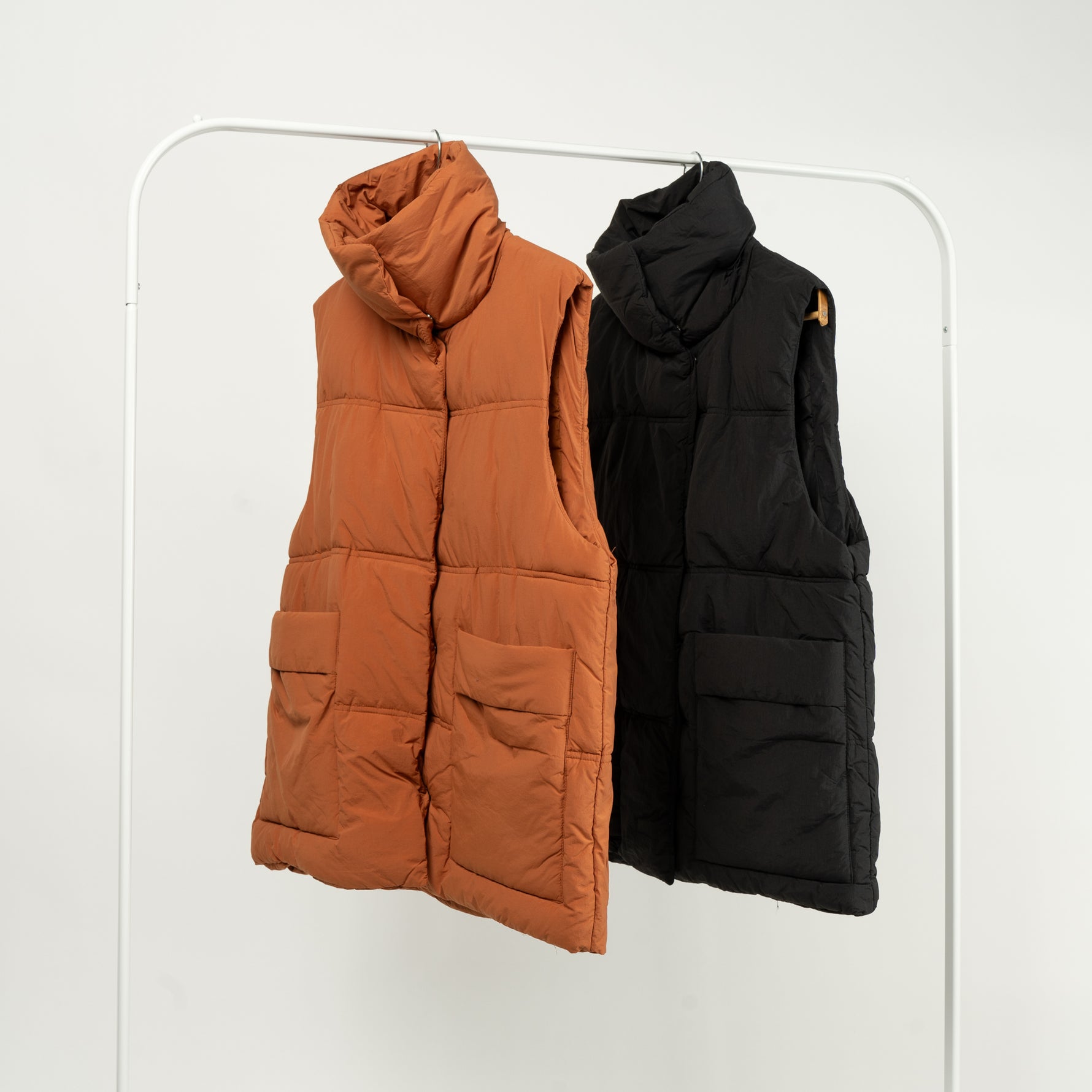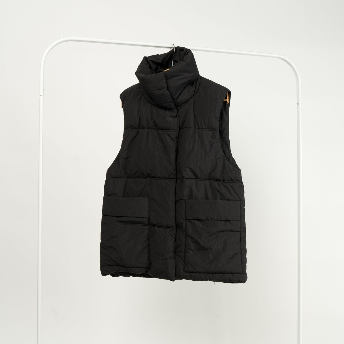 Vestă Matlasată Wind Protection cu Guler Înalt și Buzunare Mari
