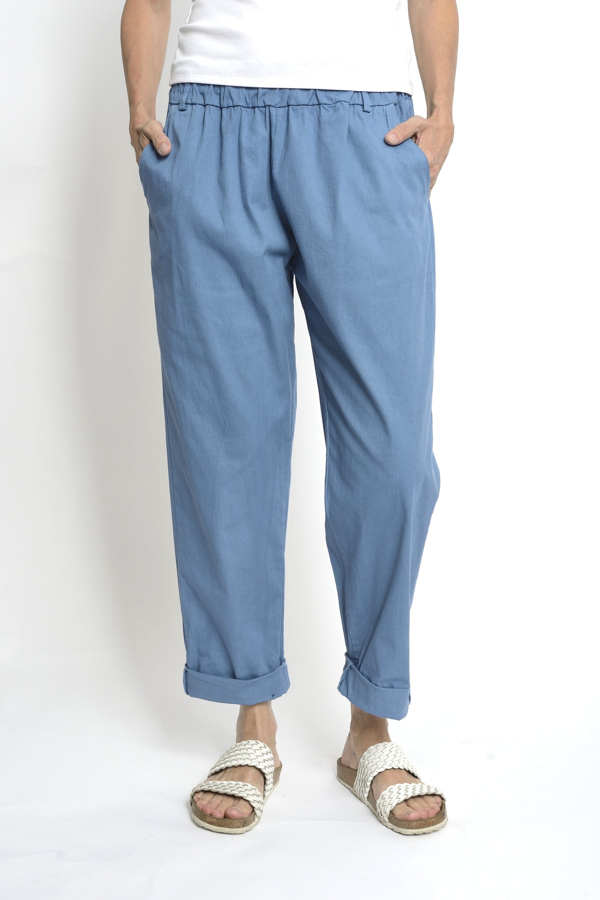 Pantaloni Conici Din Doc Elastic – Talie Medie cu Bandă Lată