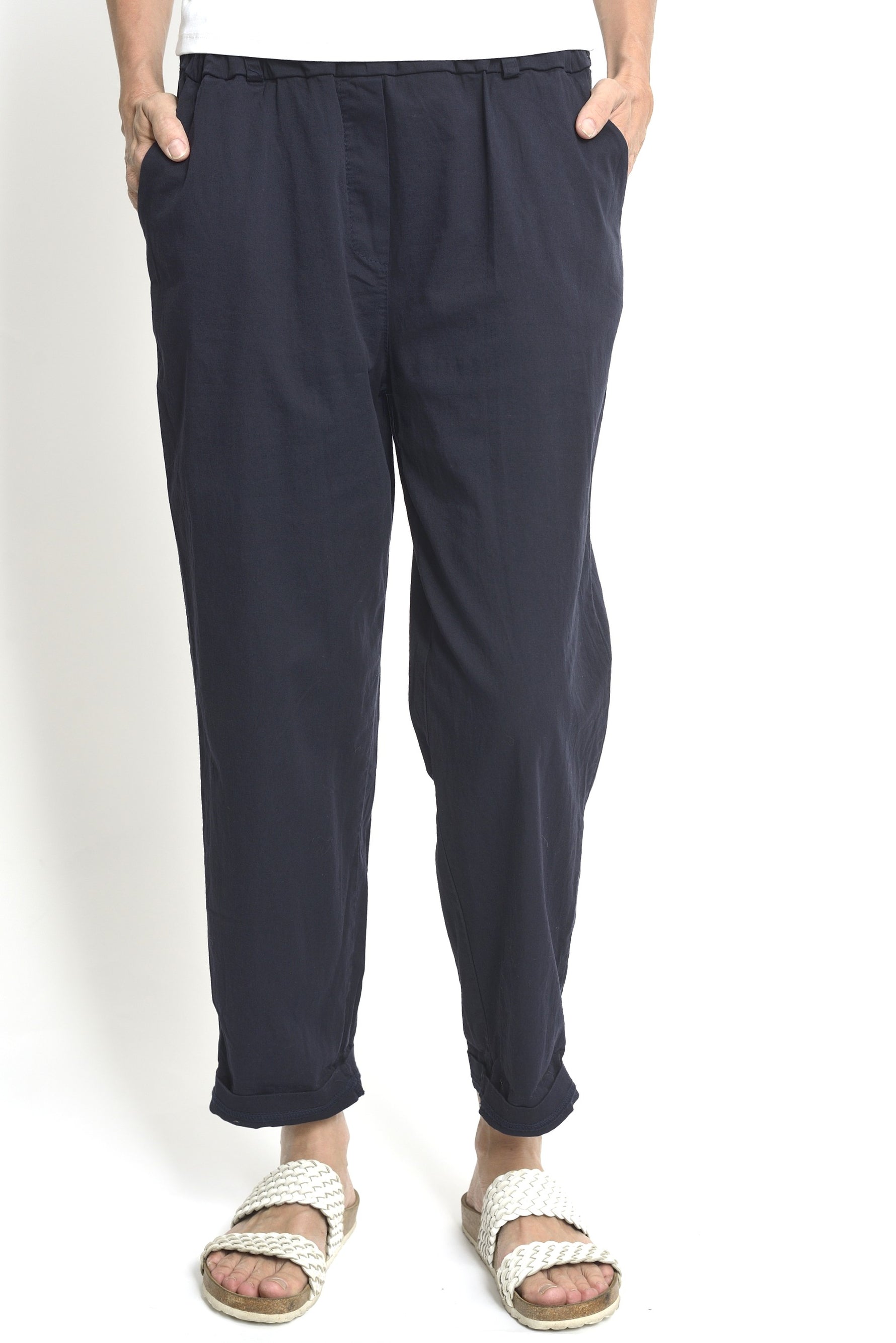 - CROIALĂ MODERNĂ: Pantaloni conici cu linie clară și tiv întors