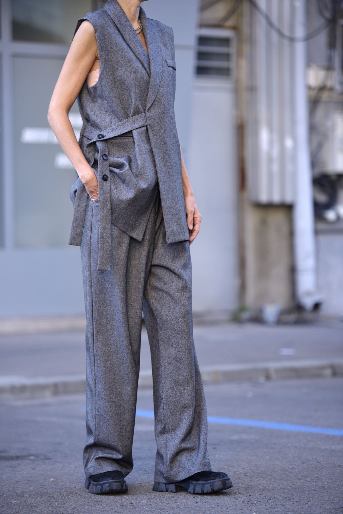 Pantaloni Largi Gri - Croială Dreaptă, Design Business Casual