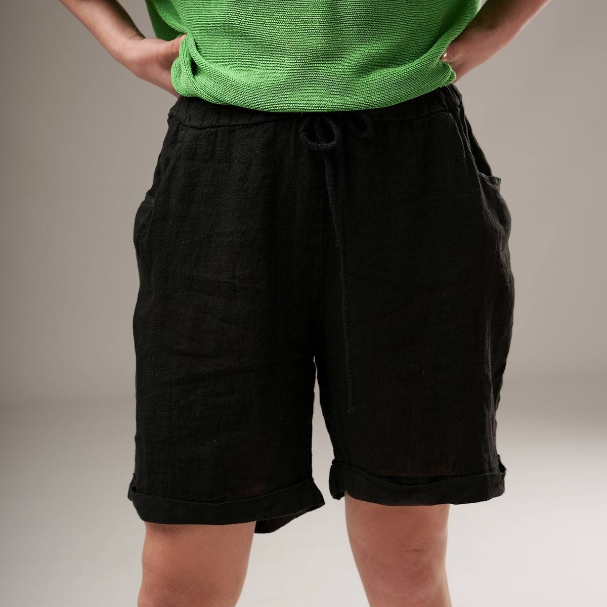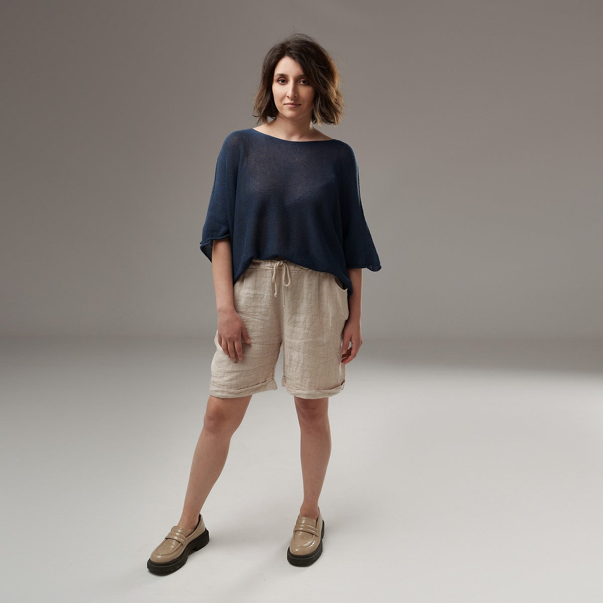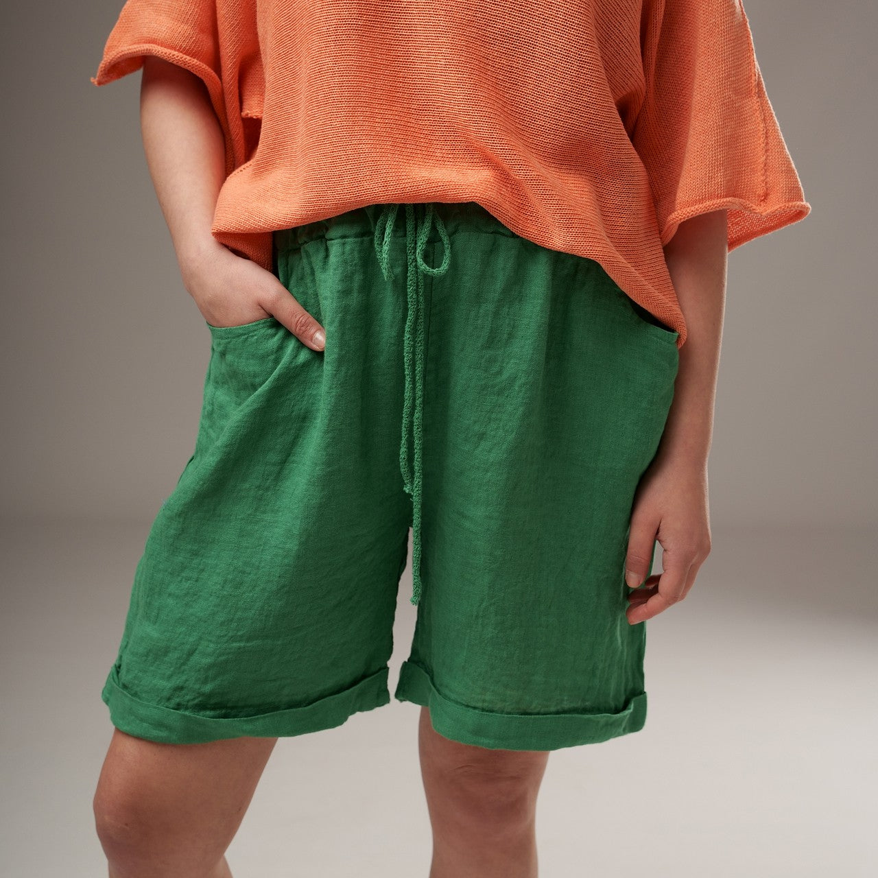 Pantaloni Scurți Lejeri Din In Șifonat – Talie Elastică Reglabilă