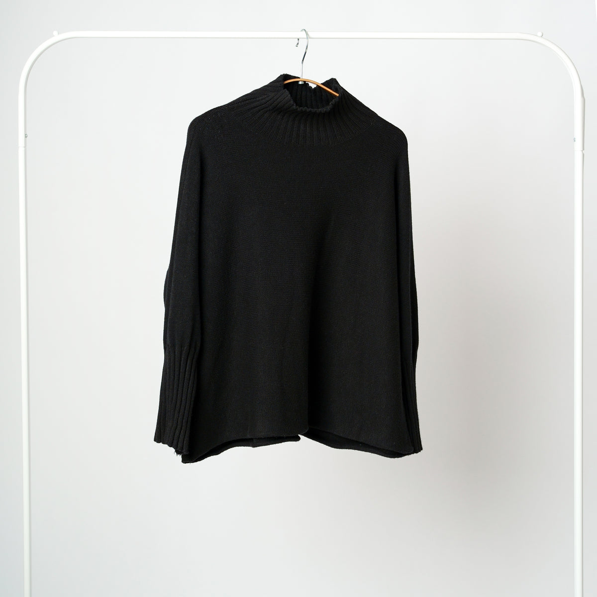 • DETALII PREMIUM: Guler înalt tip turtle neck și terminații reiate la guler și manșete.