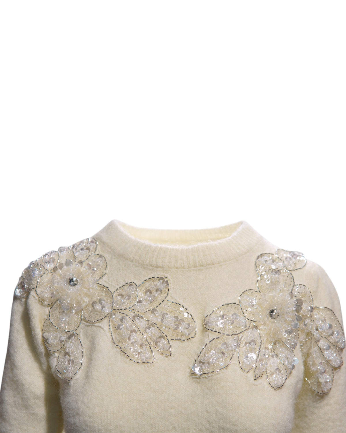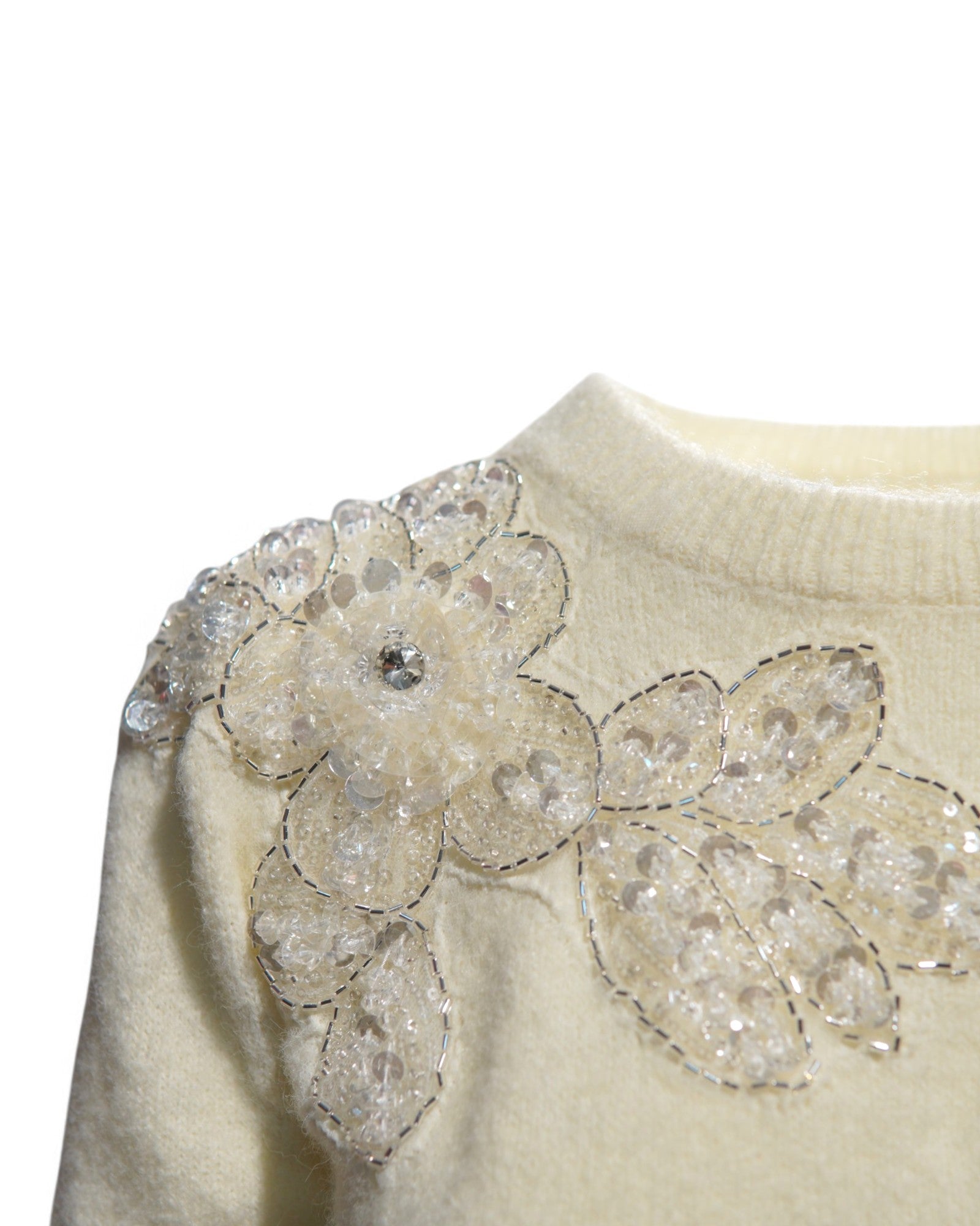 Pulover Pufos Cu Mâneca Scurtă Și Flori Din Paiete