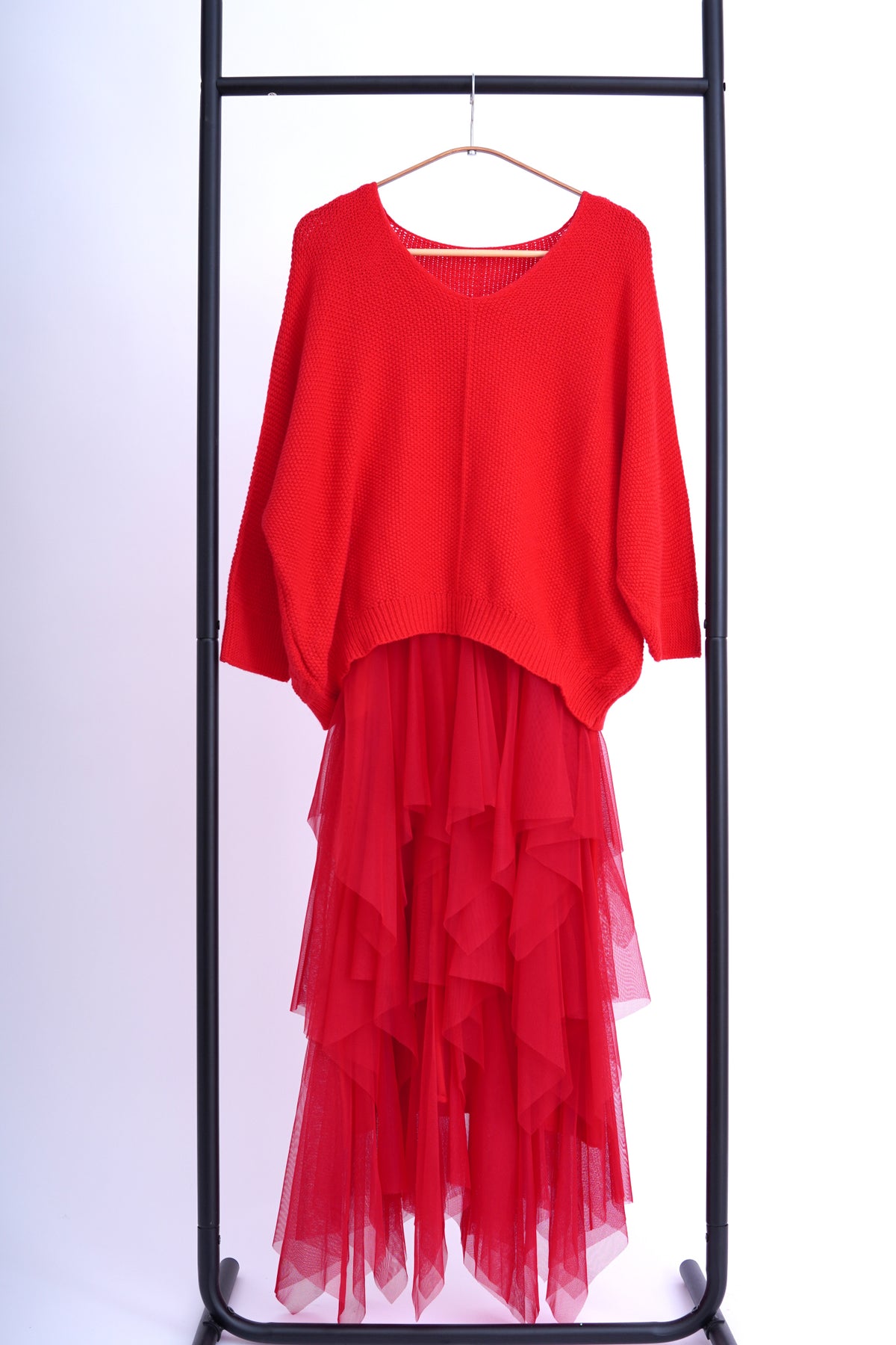 Set Rochie Din Tul Cu Volane Și Pulover Tricotat