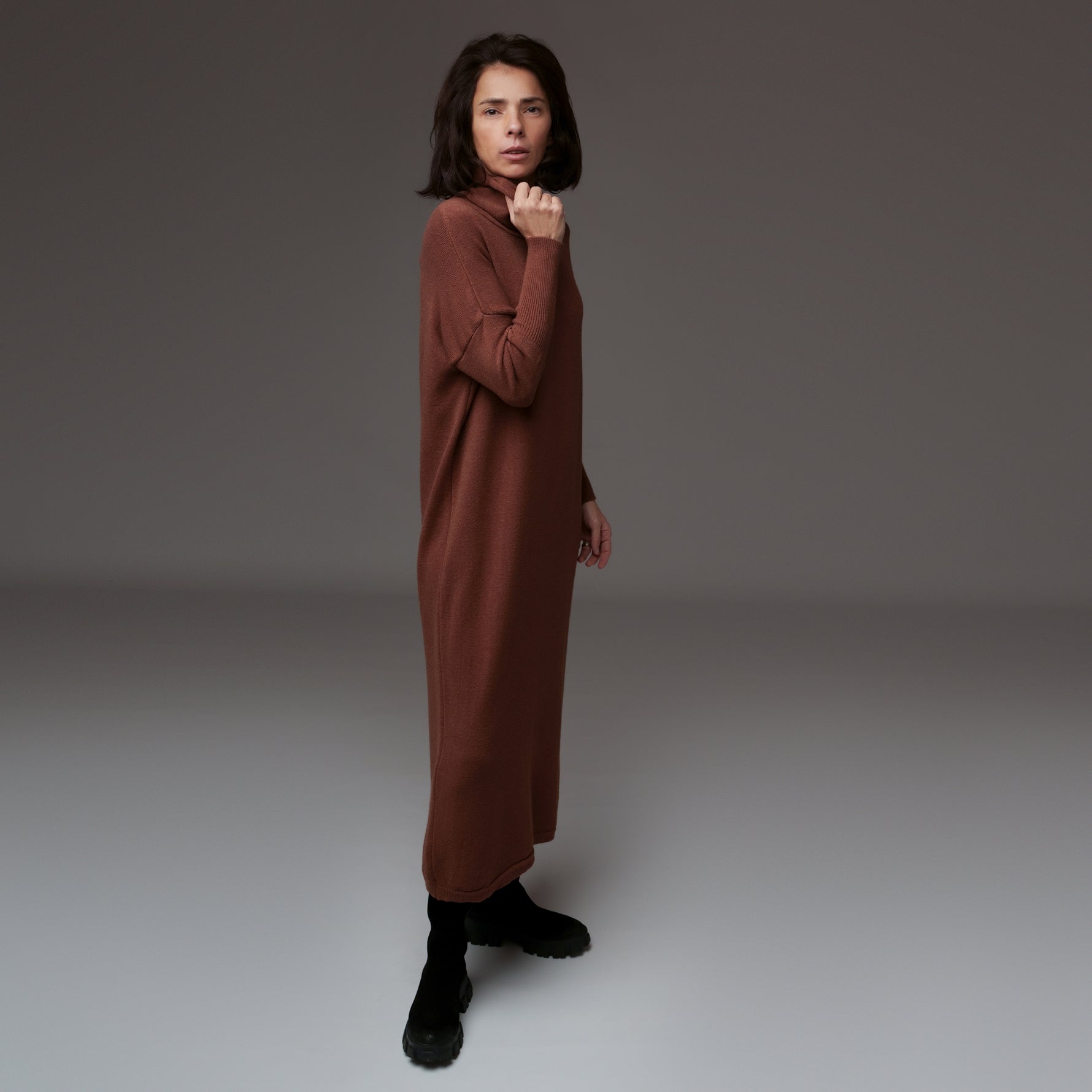 Rochie Lungă Din Tricot Cu Umeri Căzuți