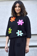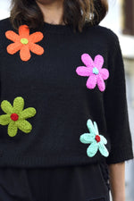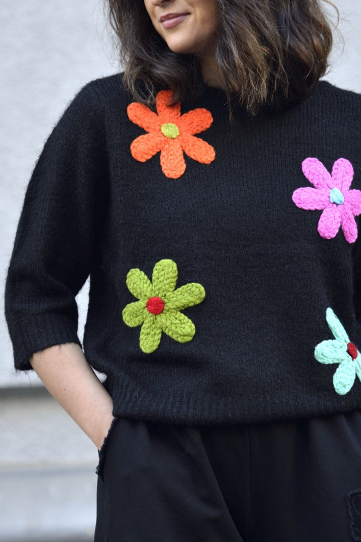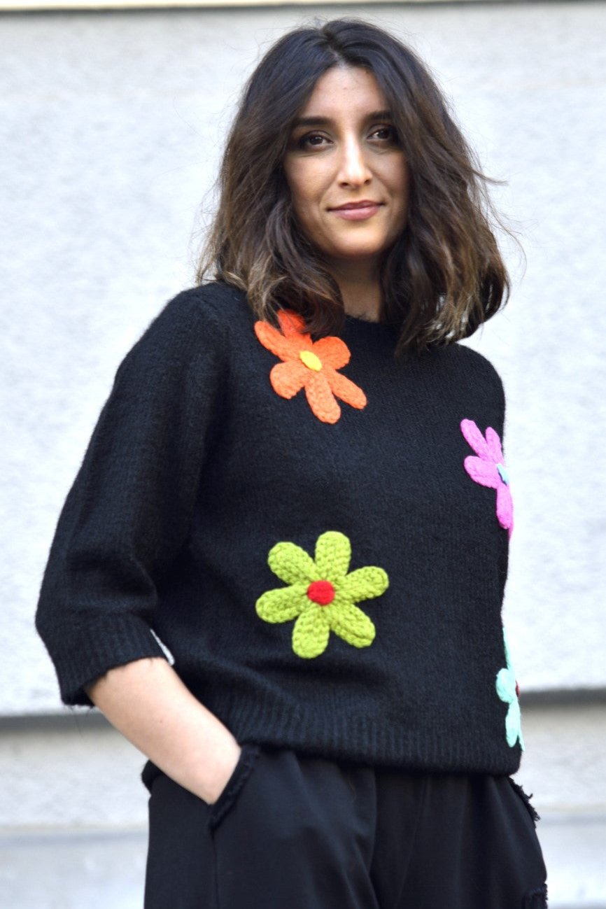 Pulover Cu Flori Tricotate Aplicate – Pufos, Lejer și Colorat