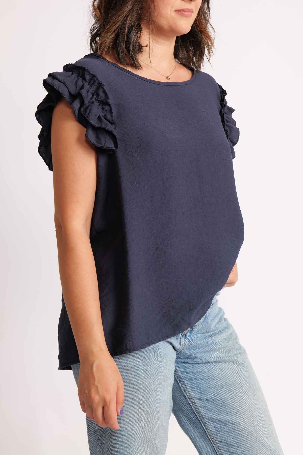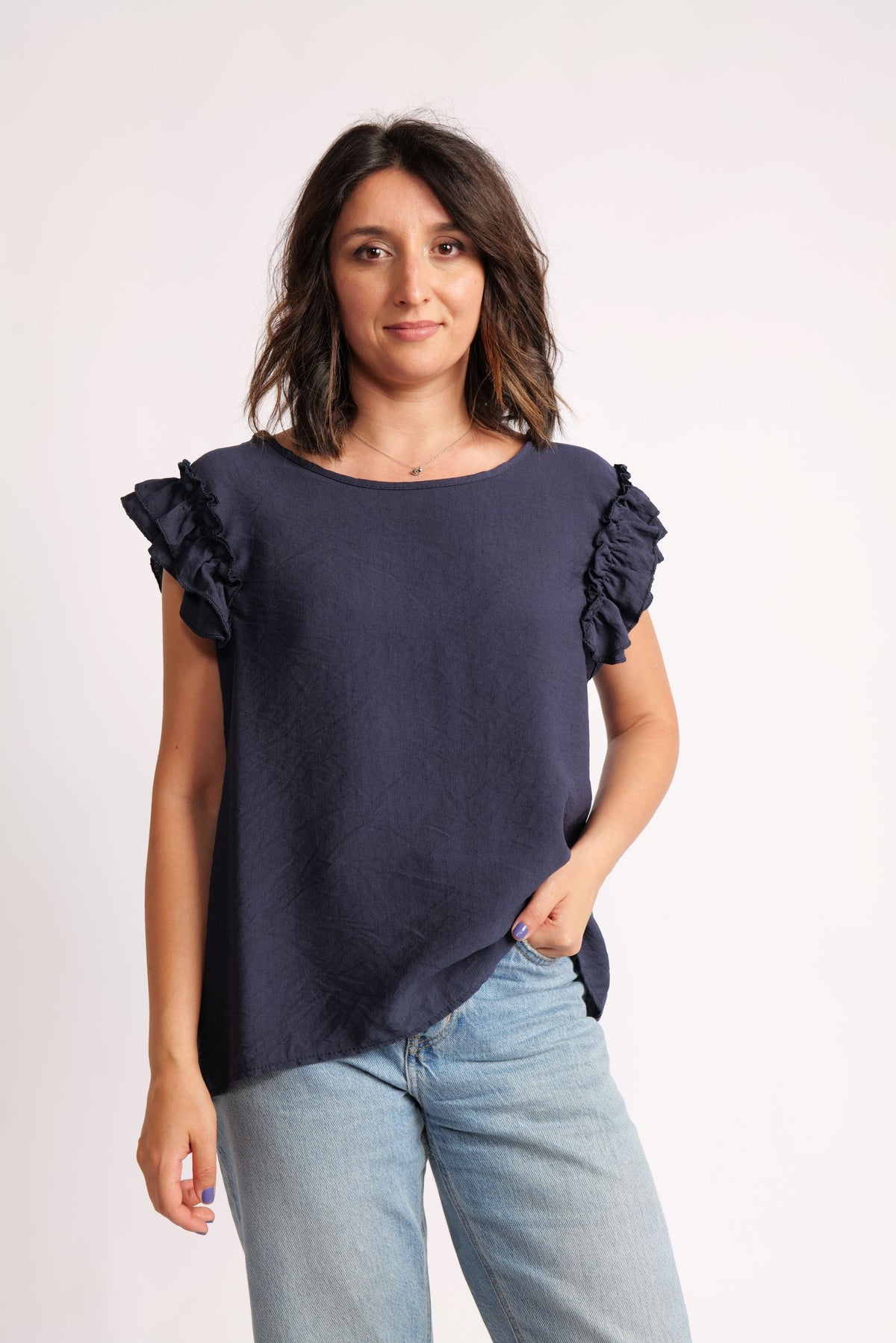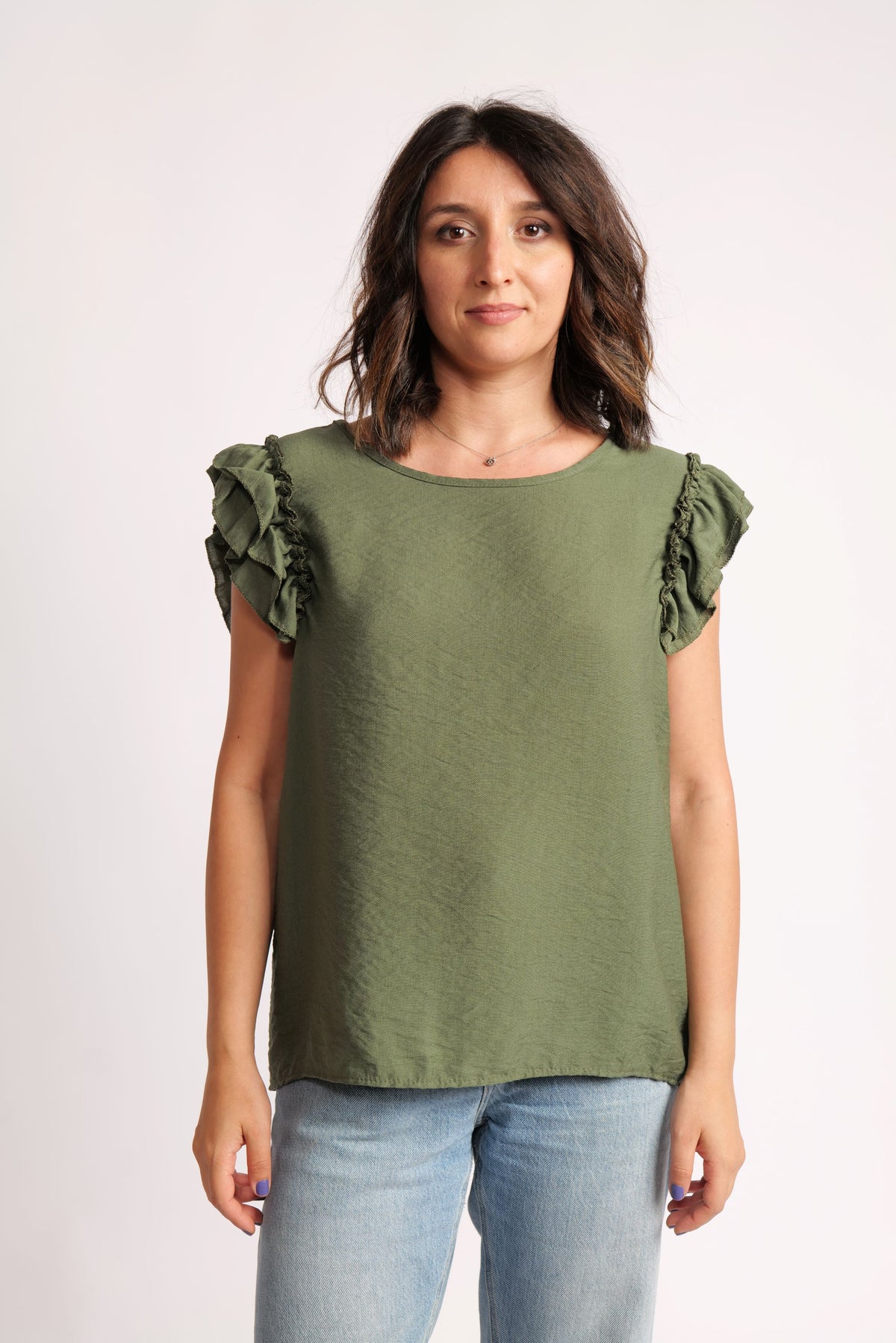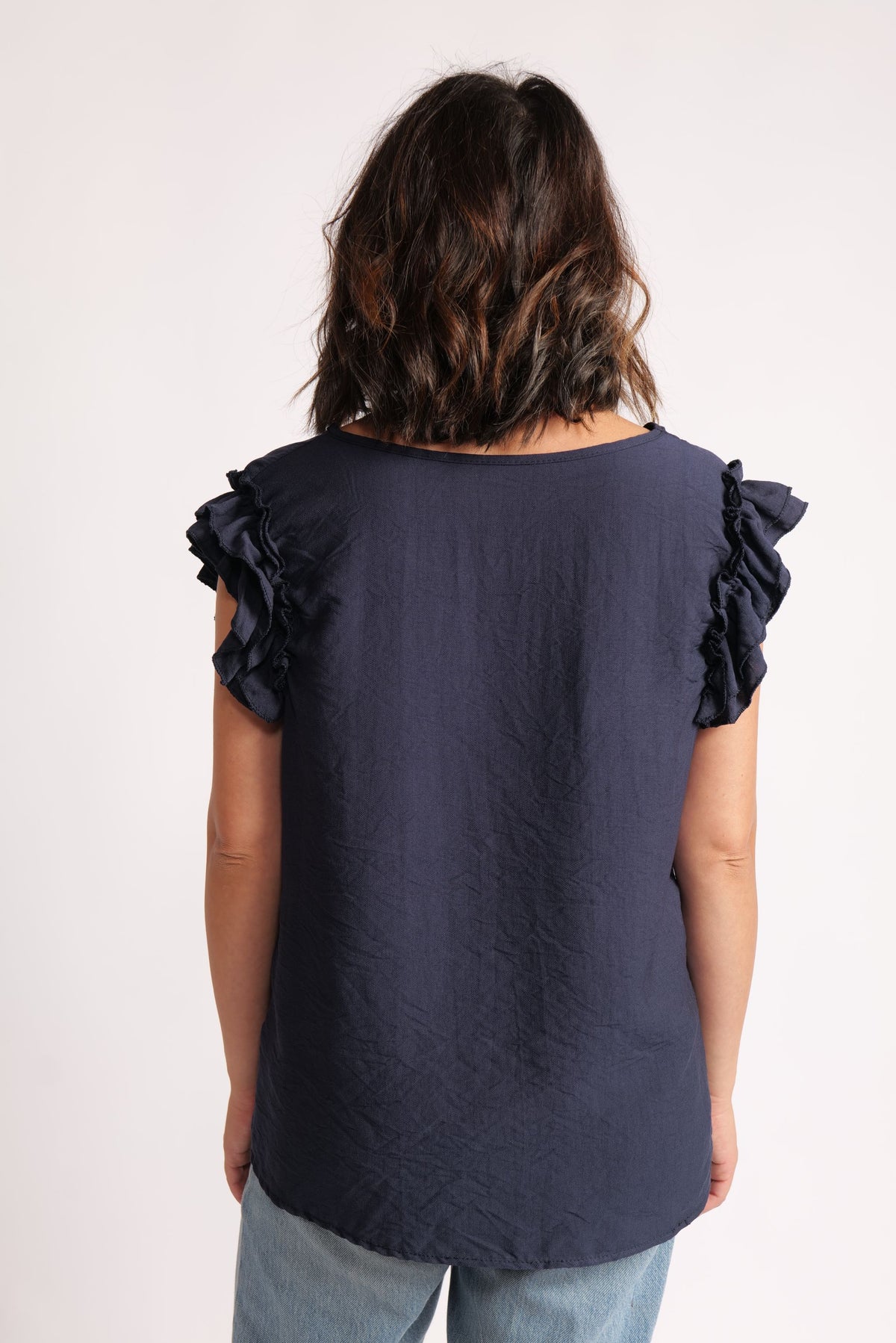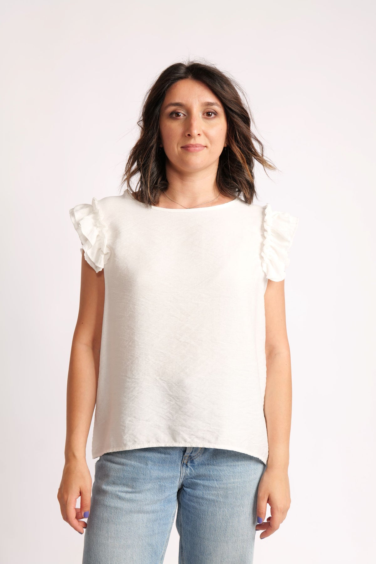 Top Din Viscoză Cu Volane La Umeri