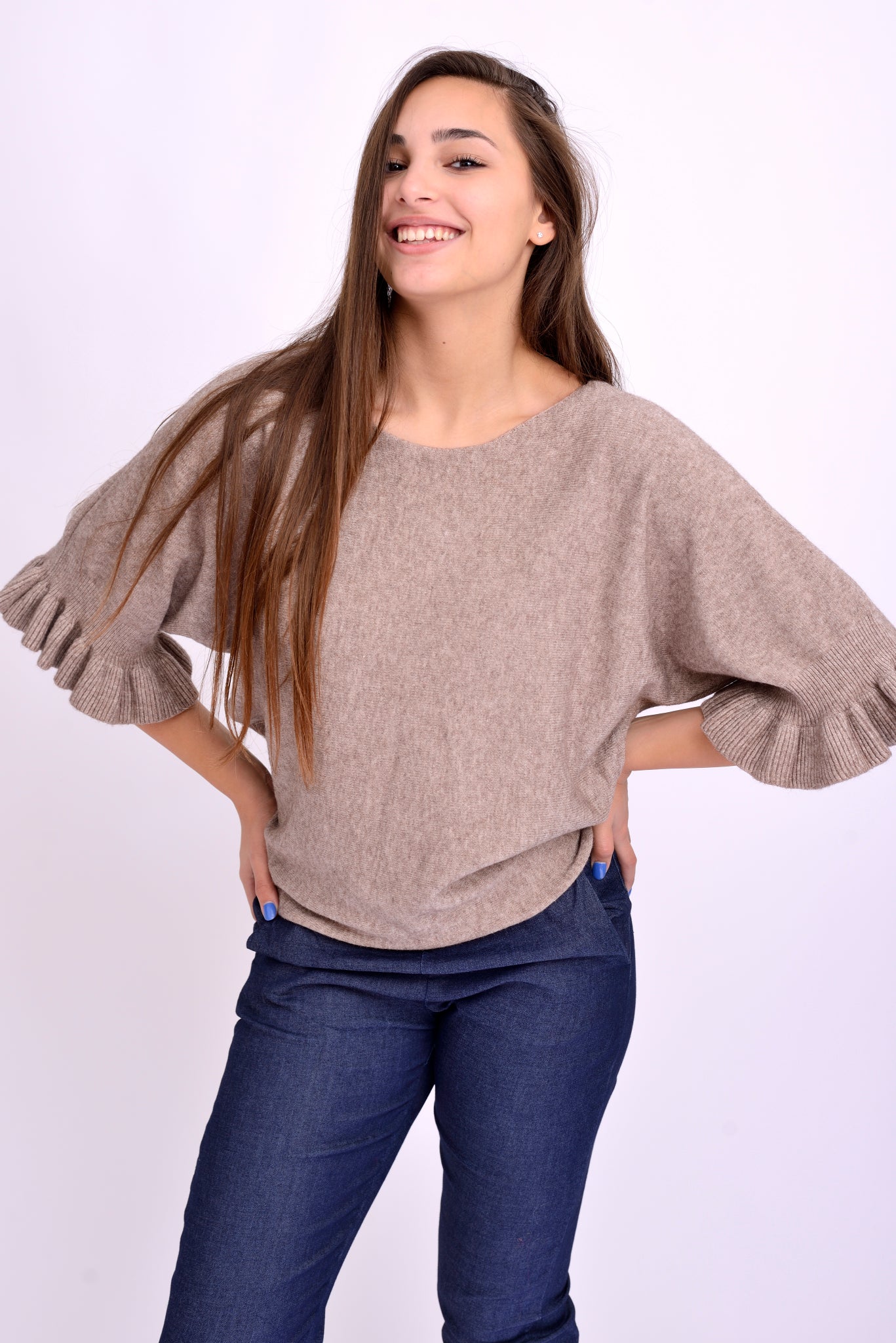 Preț pe unitate peBluză Din Tricot Soft Cu Mânecă 3/4 Cu Volan