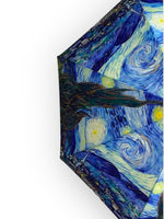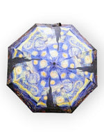 Umbrelă ușoară și colorată cu imprimeu inspirat din pictura lui Vincent Van Gogh - Starry Night. Deschidere automată și uscare rapidă, Prevăzută cu husă de transport și spițe anti-vânt.