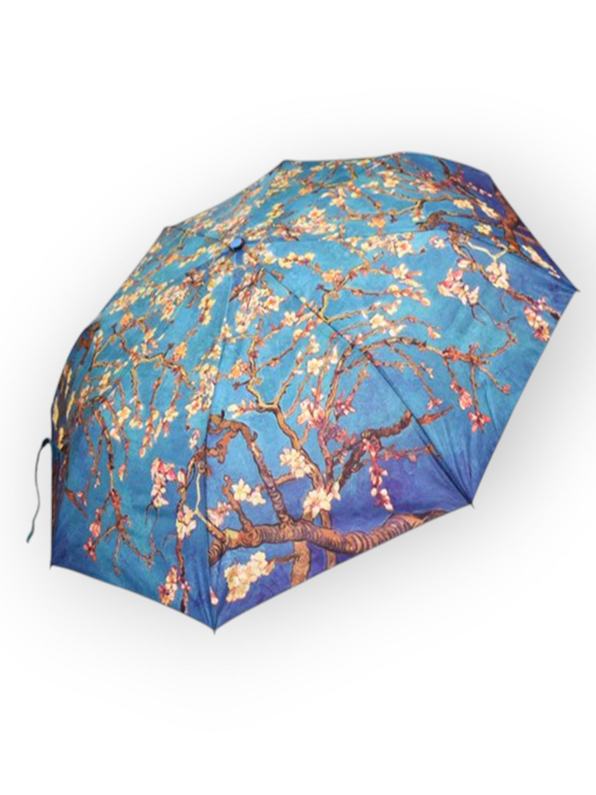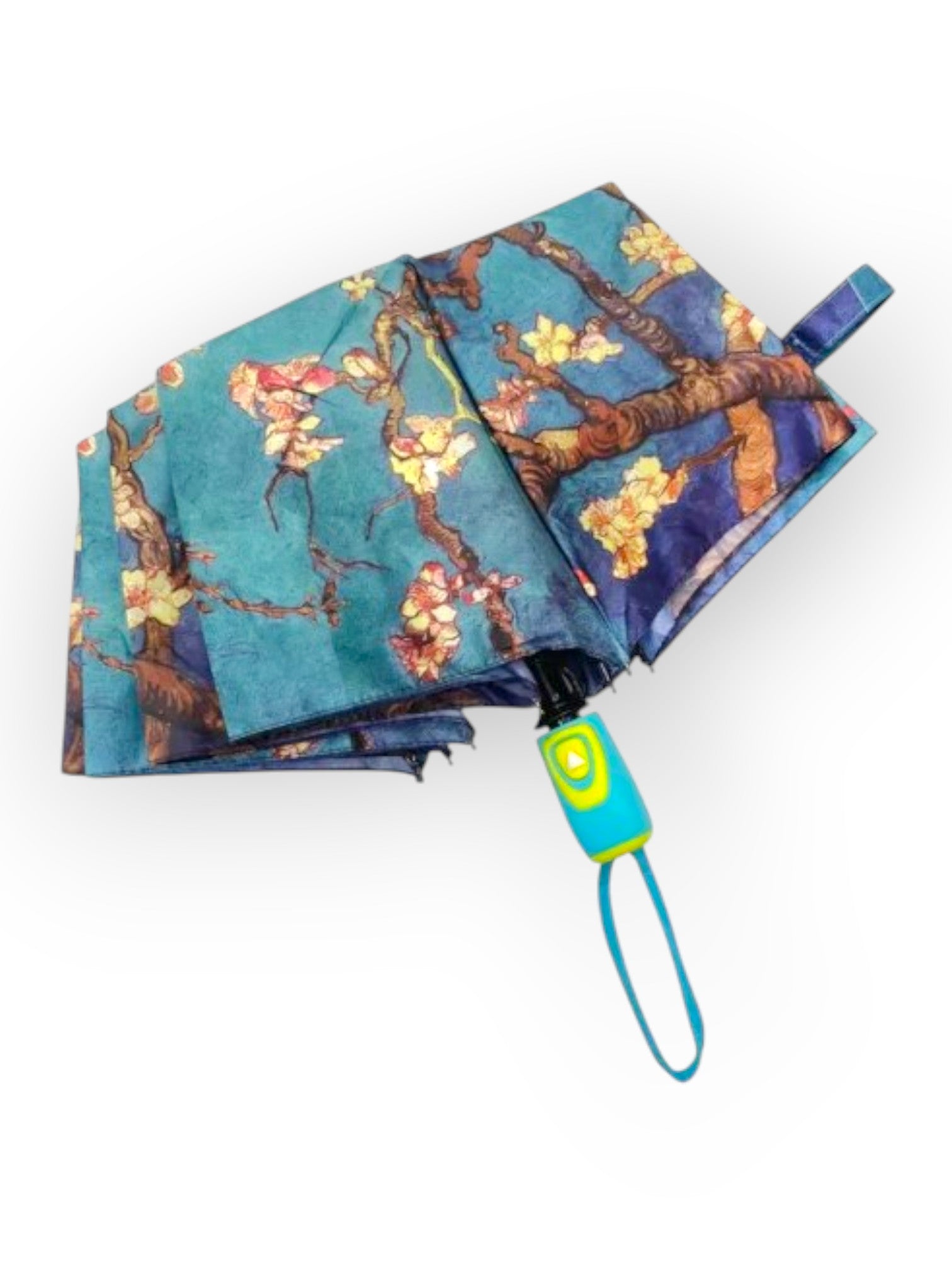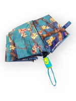 Umbrelă ușoară și colorată cu imprimeu inspirat din pictura lui Vincent Van Gogh - Migdal înflorit. Deschidere automată și uscare rapidă, Prevăzută cu husă de transport și spițe anti-vânt.