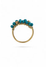 Inel fin reglabil cu mărgeluțe turqoise, realizat din alamă 100% reciclată. Lucrat manual.